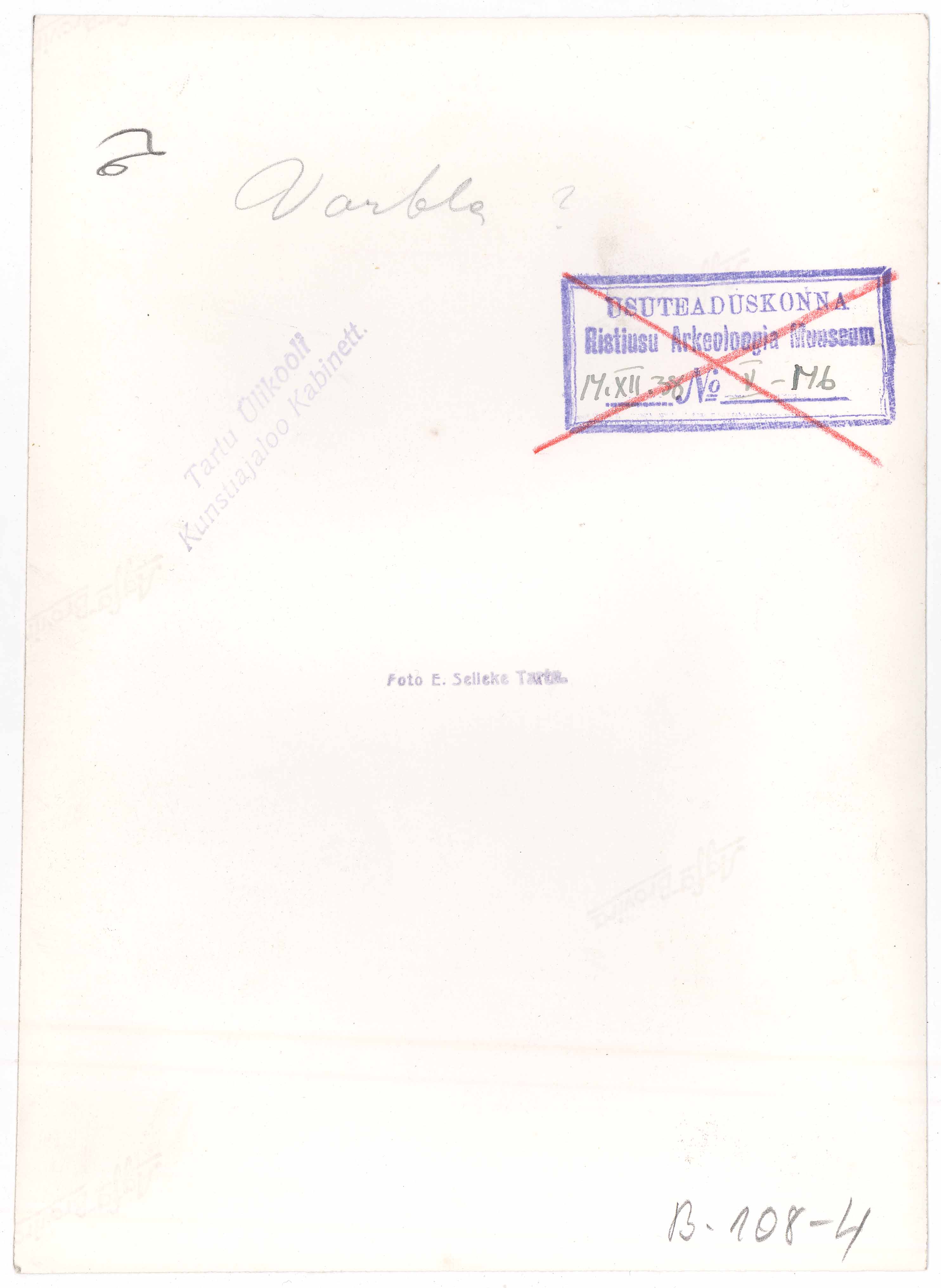 Tekst foto tagaküljel: Varbla? Templid: E. Selleke; Kabinett; RAM 14.XII.38 No V-146