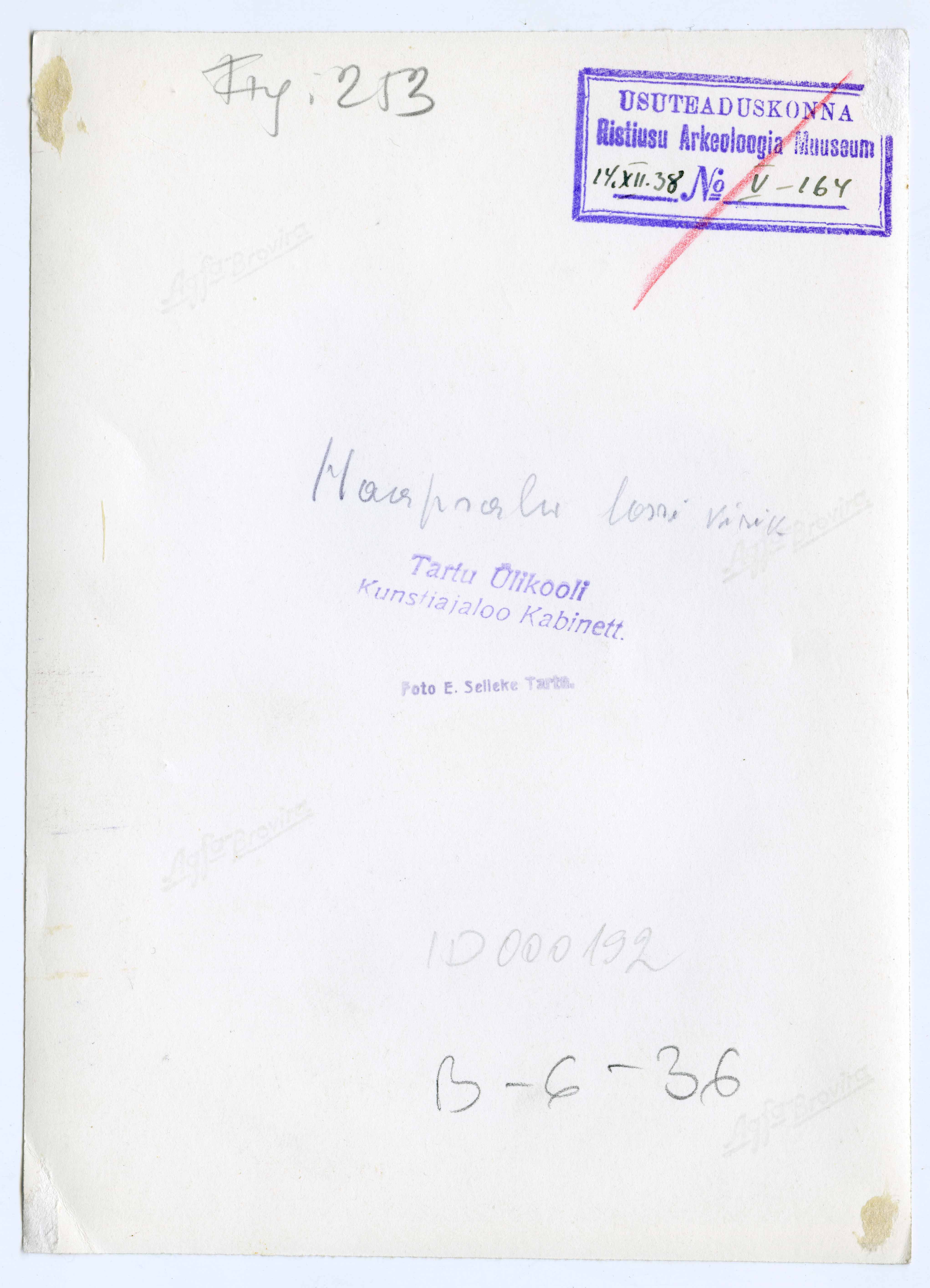 Tekst negatiivi ümbrikul: Haapsalu, skulptuure. Templid: Hamini dep, Selleke 1938