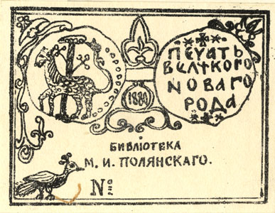 Nelinurkses raamistuses kaks pitsatijäljendit. Joonises all keskel: БИБЛİОТЕКA / М. И. ПОЛЯНСКАГО. / № ülal paremal pitsatis: ПЕYАТЬ / ВЕЛIКОГО / NОВАГО / РОД keskel: 1880