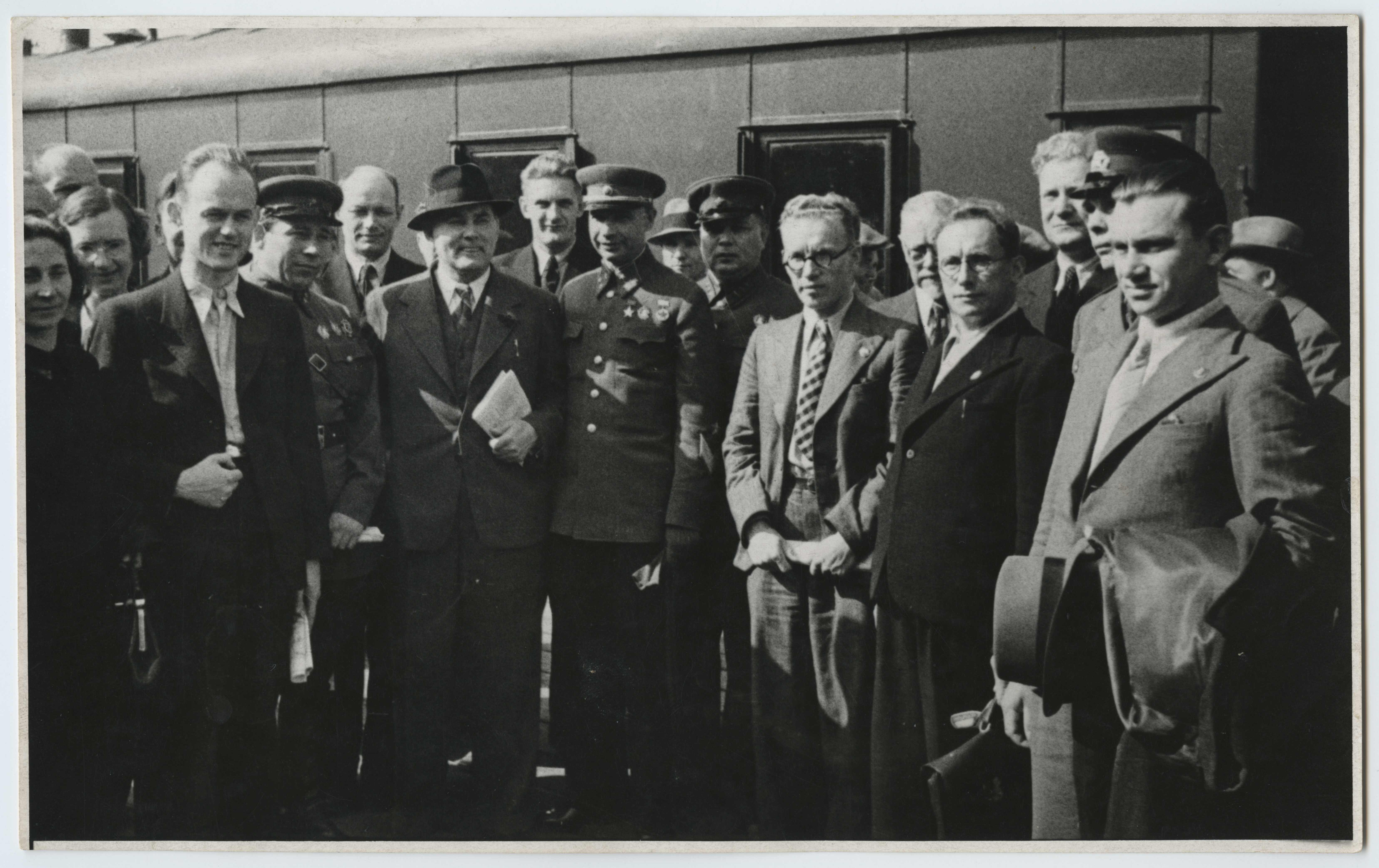 Eesti Riigivolikogu delegatsioon Moskvast tagasisõidul Leningradi raudteejaamas 1940. aasta augustis