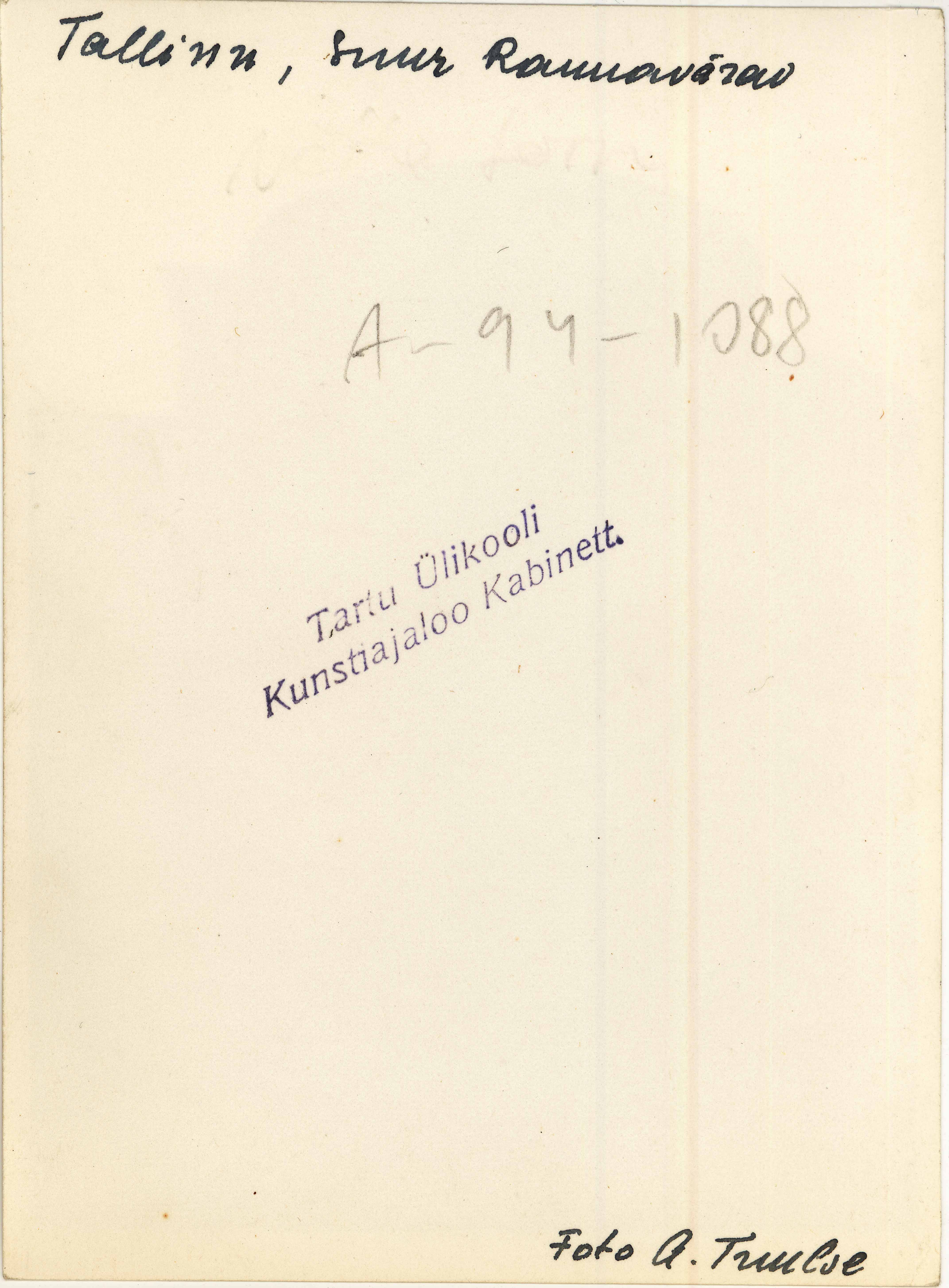 | dc.description | Tekst foto tagaküljel: Tallinn, Suur Rannavärav. Foto A. Tuulse. Tempel: Kabinett | et |