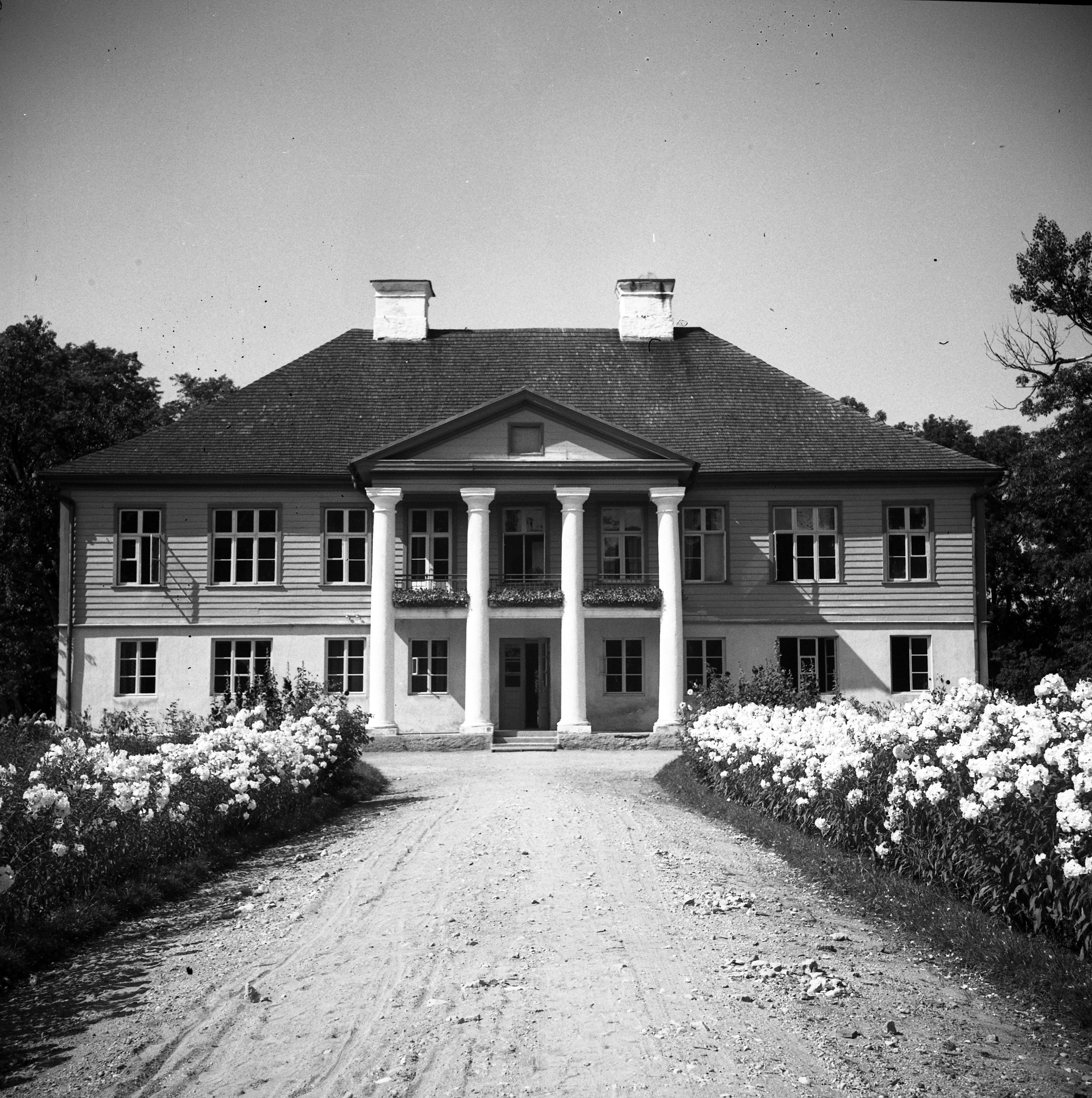 Tekst negatiivi ümbrikul: härrastemaja, 1938. Foto V. Raam. Mõisahoone. Penningu. Tempel: Kabinett