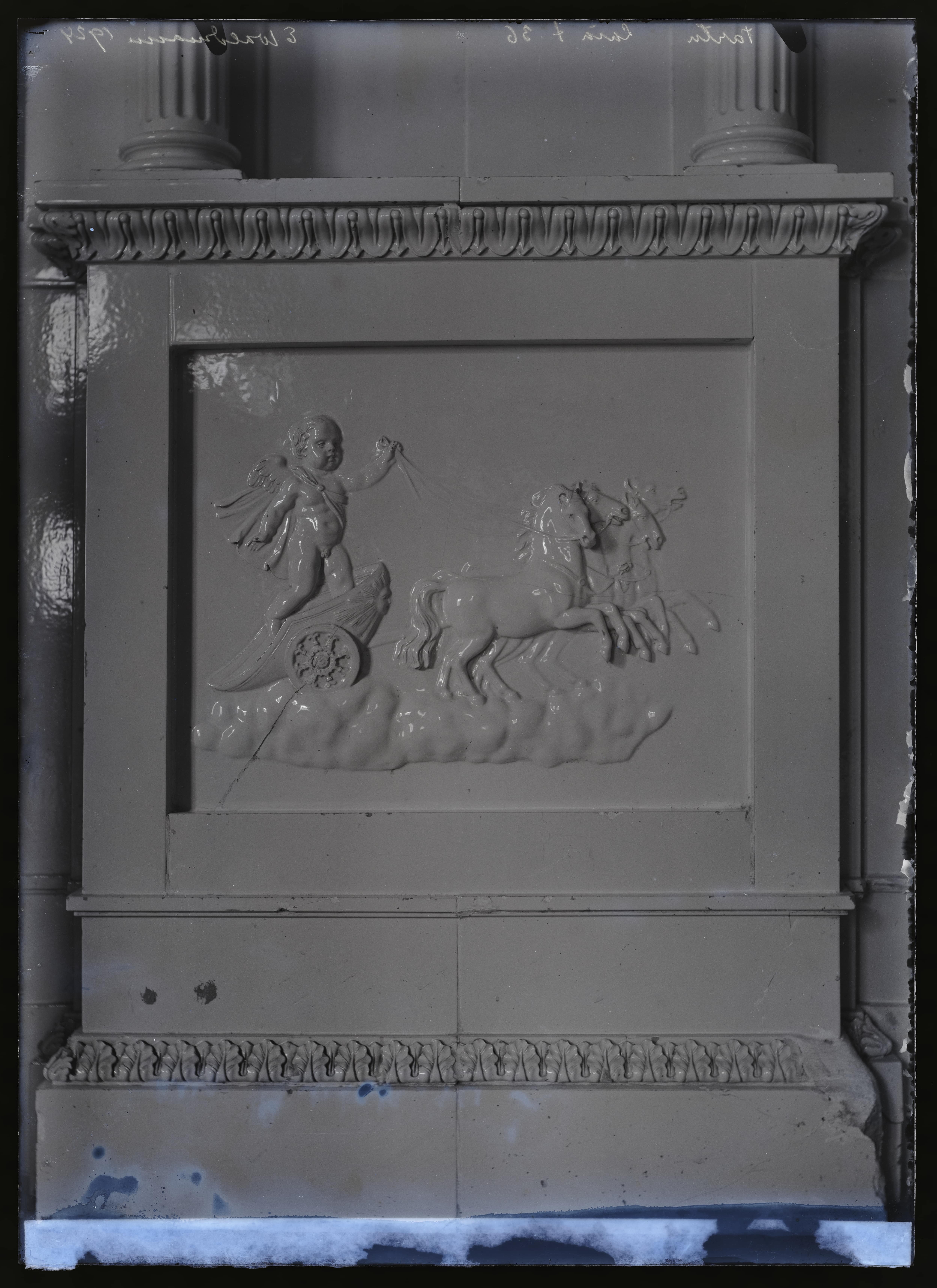 Tekst negatiivi ümbrikul: Dorpat, Haus Breitstrasse 36. Ahju kaunistus (kunstiajal. kabineti ruumes). Foto Waldmann 1924 Tempel: Instituut