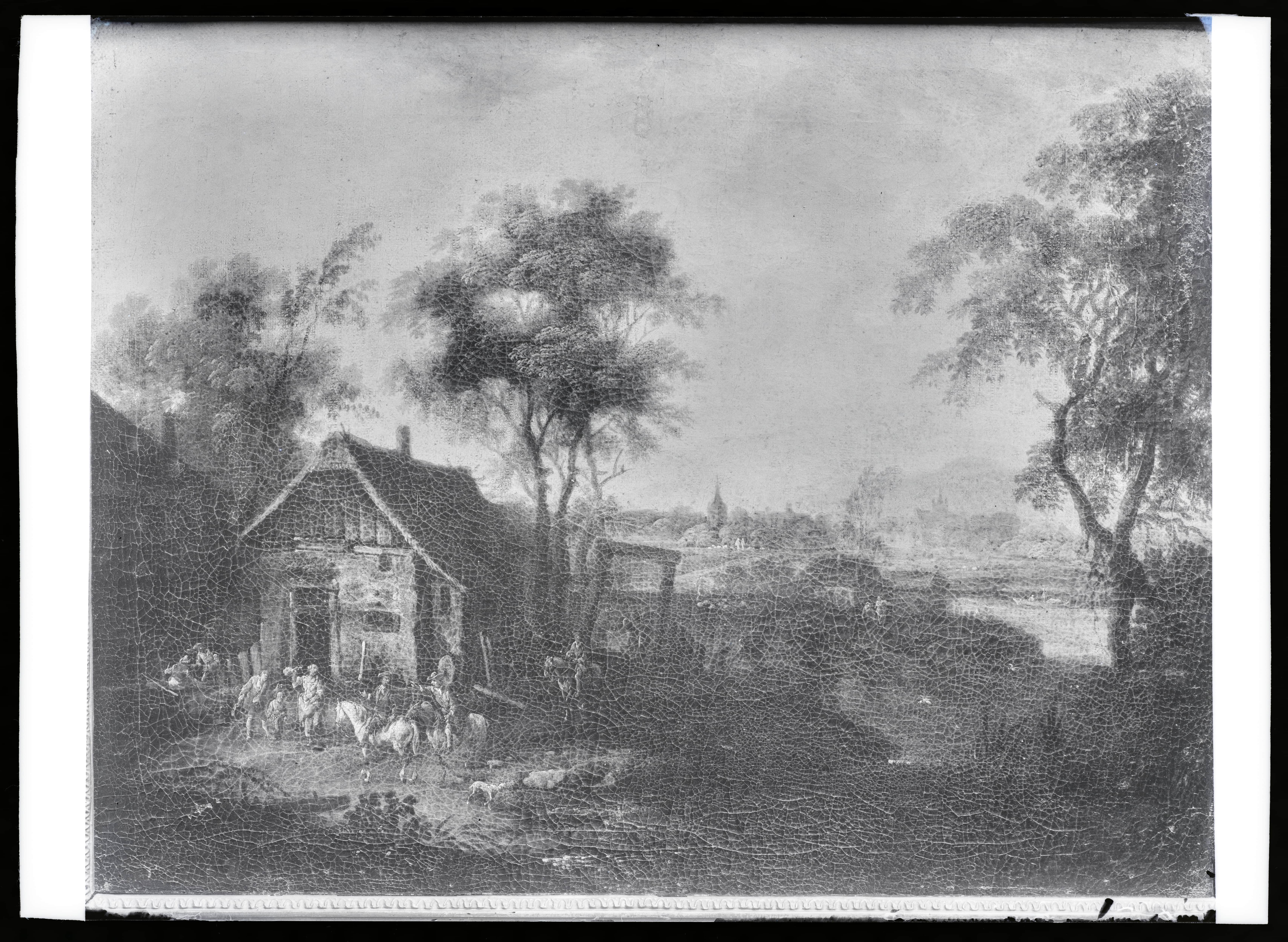 Tundmatu kunstniku maal. Maastik ratsanikkudega kõrtsi ees (ERM)
