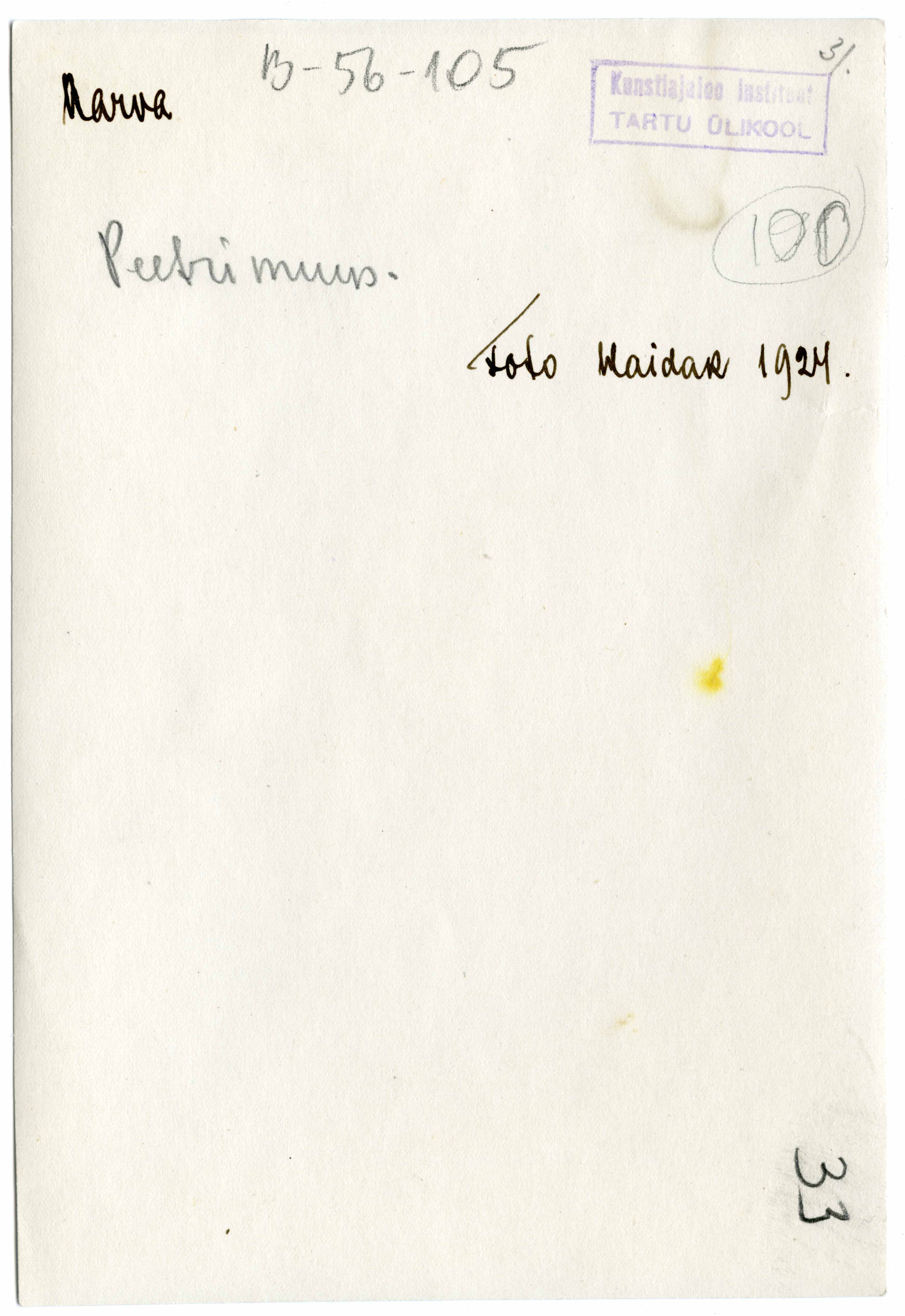 Tekst foto tagaküljel: Narva. Foto Haidak 1924. Peetri muus. Tempel: Instituut