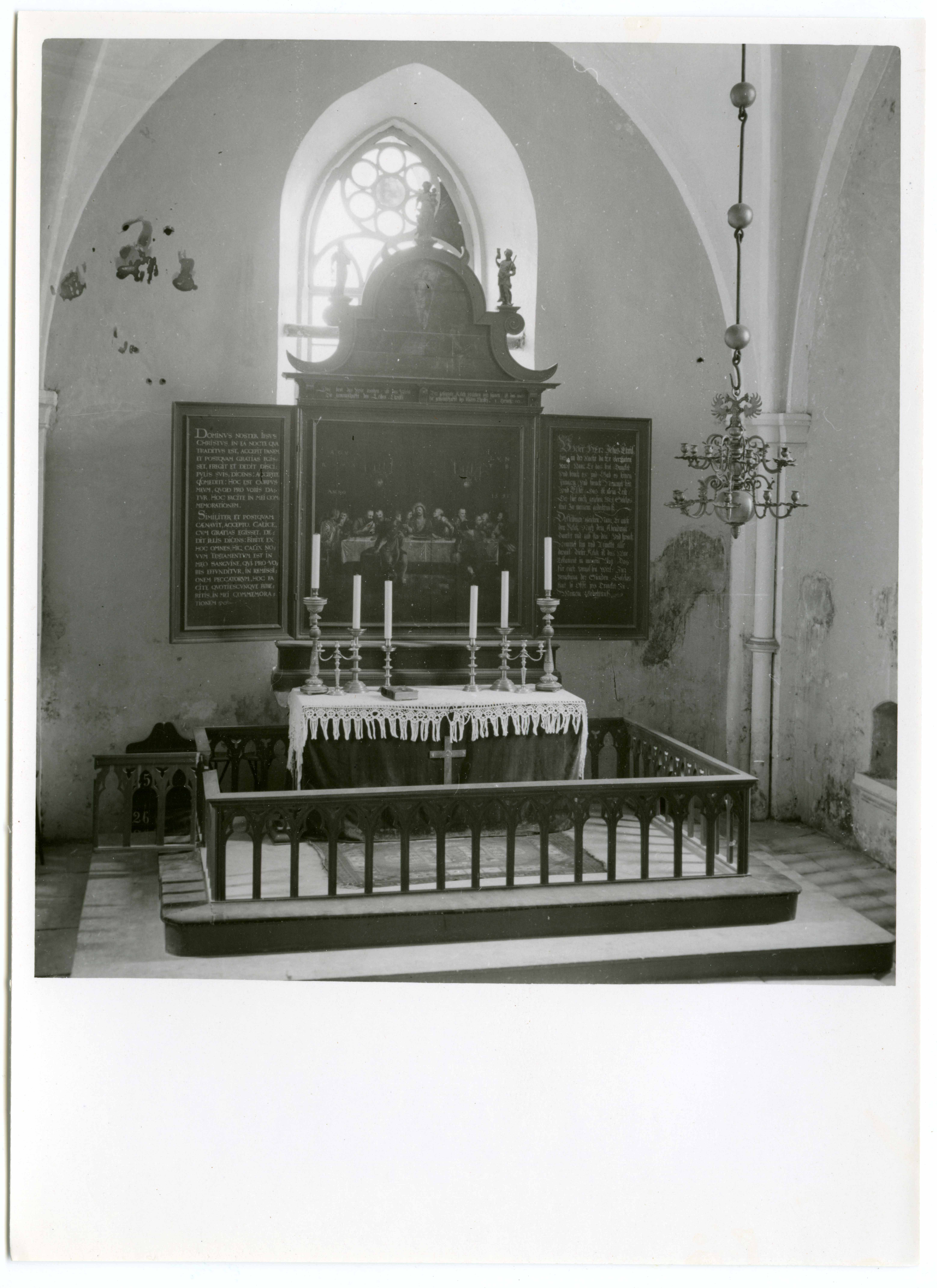 Kihelkonna Mihkli kirik. Kooriruumis vaade altarile