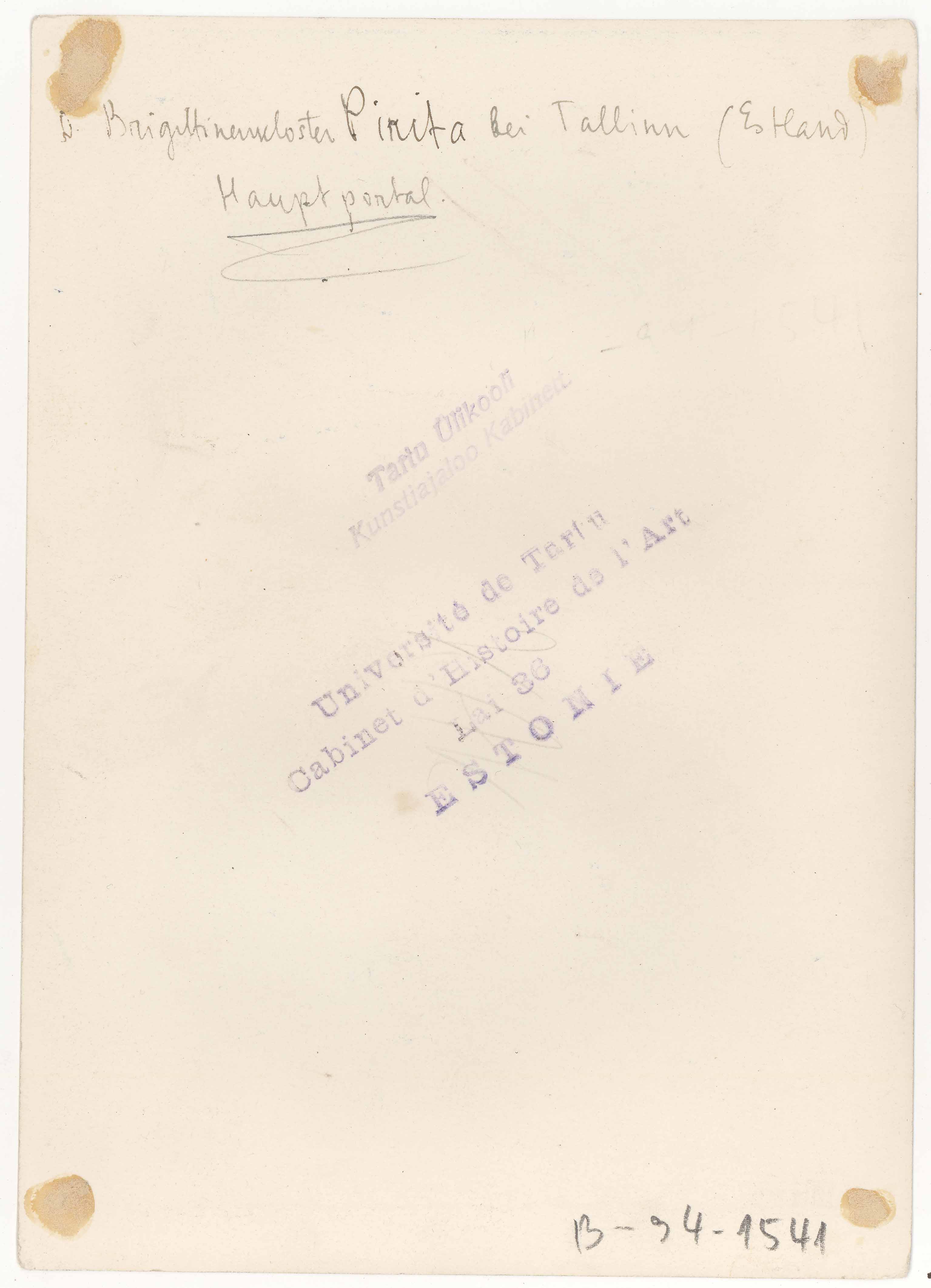 | dc.description | Tekst foto tagaküljel: D. Brigittenkloster Pirita bei Tallinn (Estland). Hauptportal. Tempel: Kabinett; Universite... Cabinet d'Histoire de l'Art. | et |