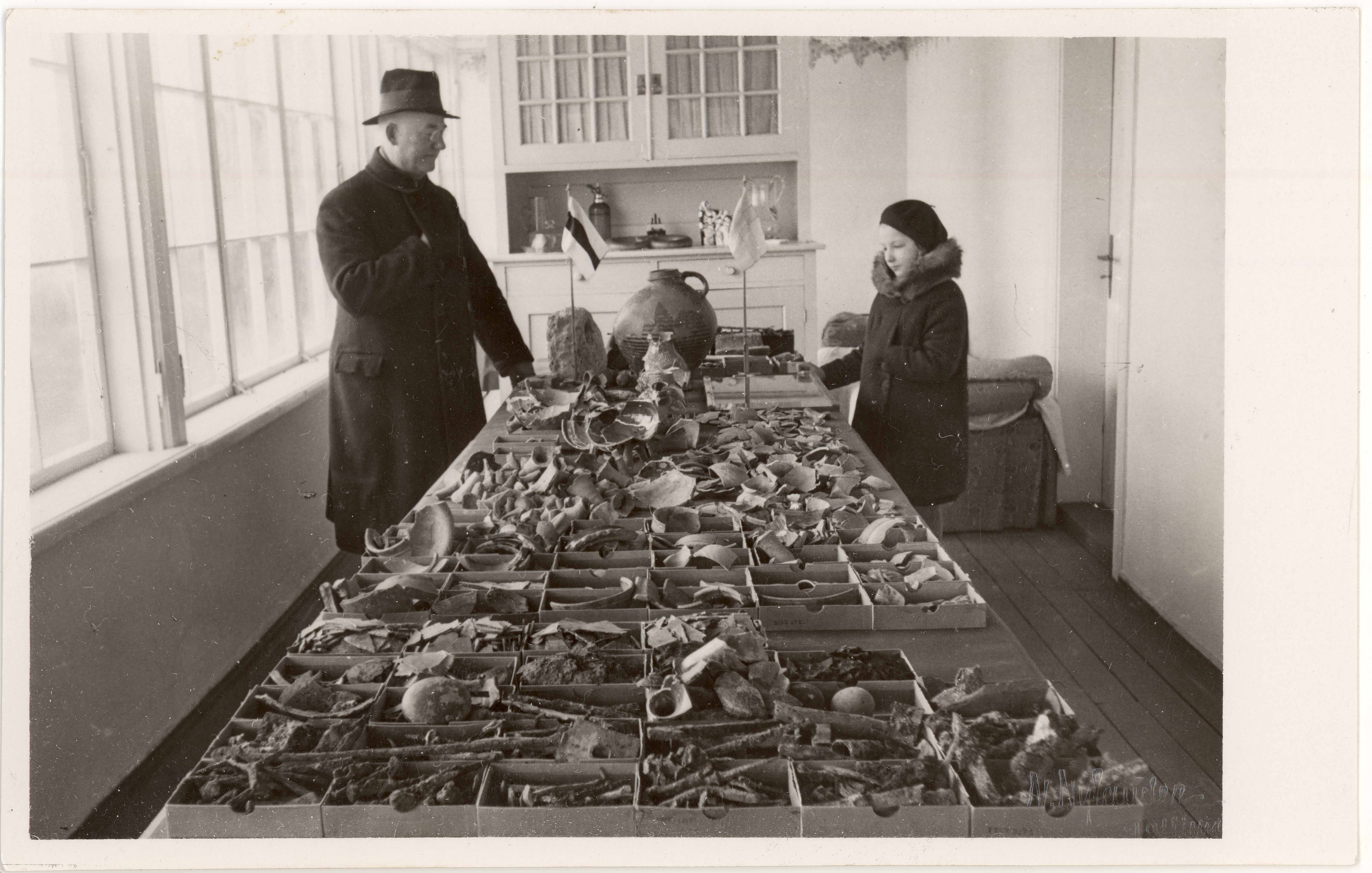 Pirita kloostri varemete väljakaevamistel leitud esemete killud. Pildil A. Strutzkin