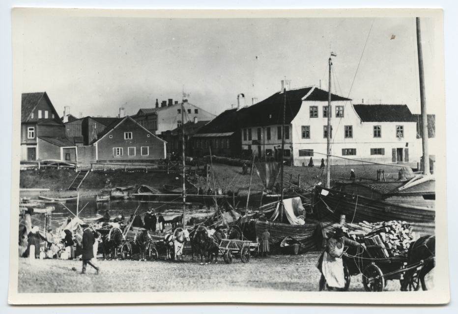 Tartu. Puulodjad ja puukoormad Emajõe ääres Auriku tänava kohal