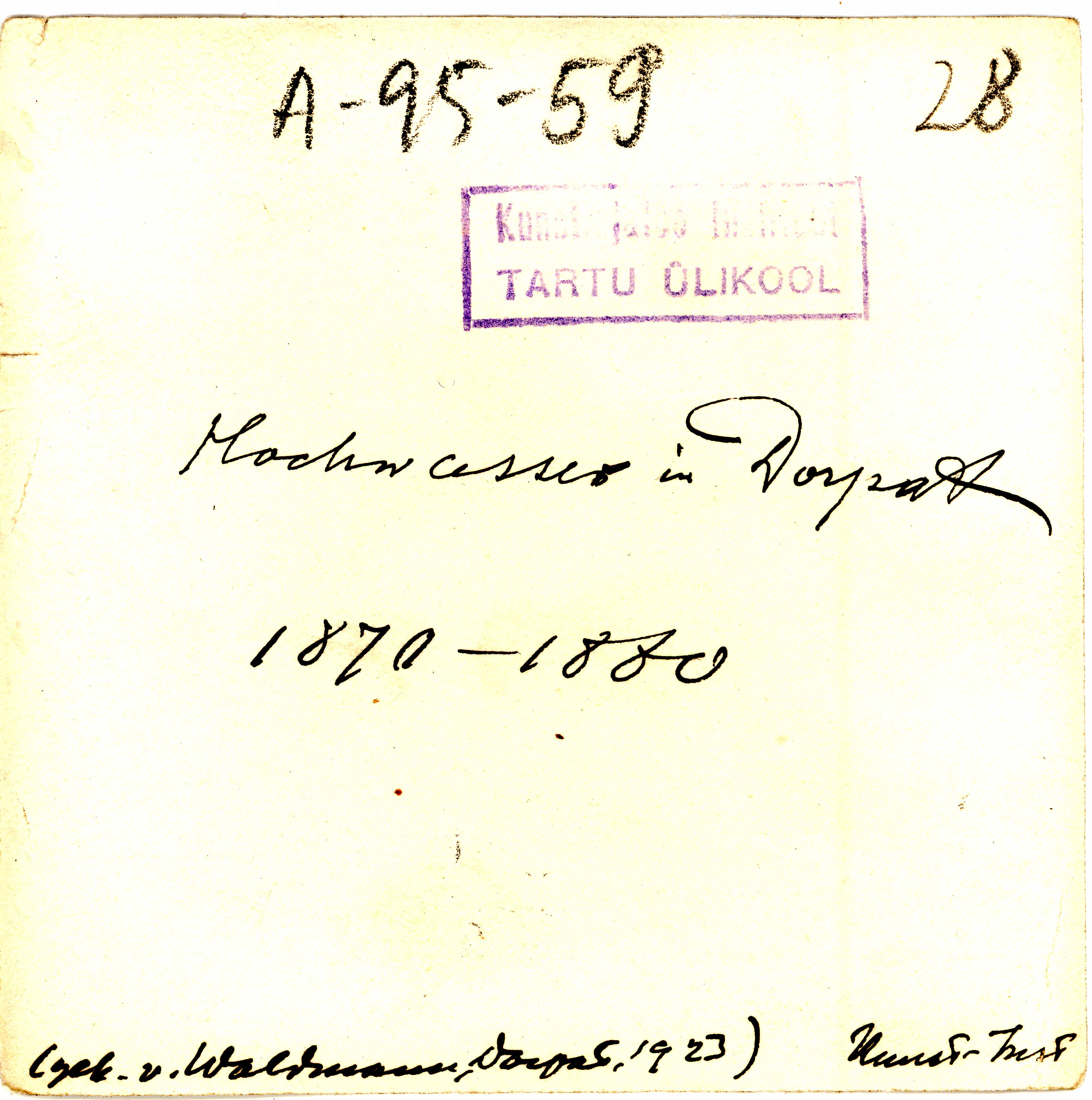Tekst foto tagaküljel: Hochwasser in Dorpat. 1870-1880. (gek v Waldmann, Dorpat, 1923) Kunst. Inst. Tempel: Instituut