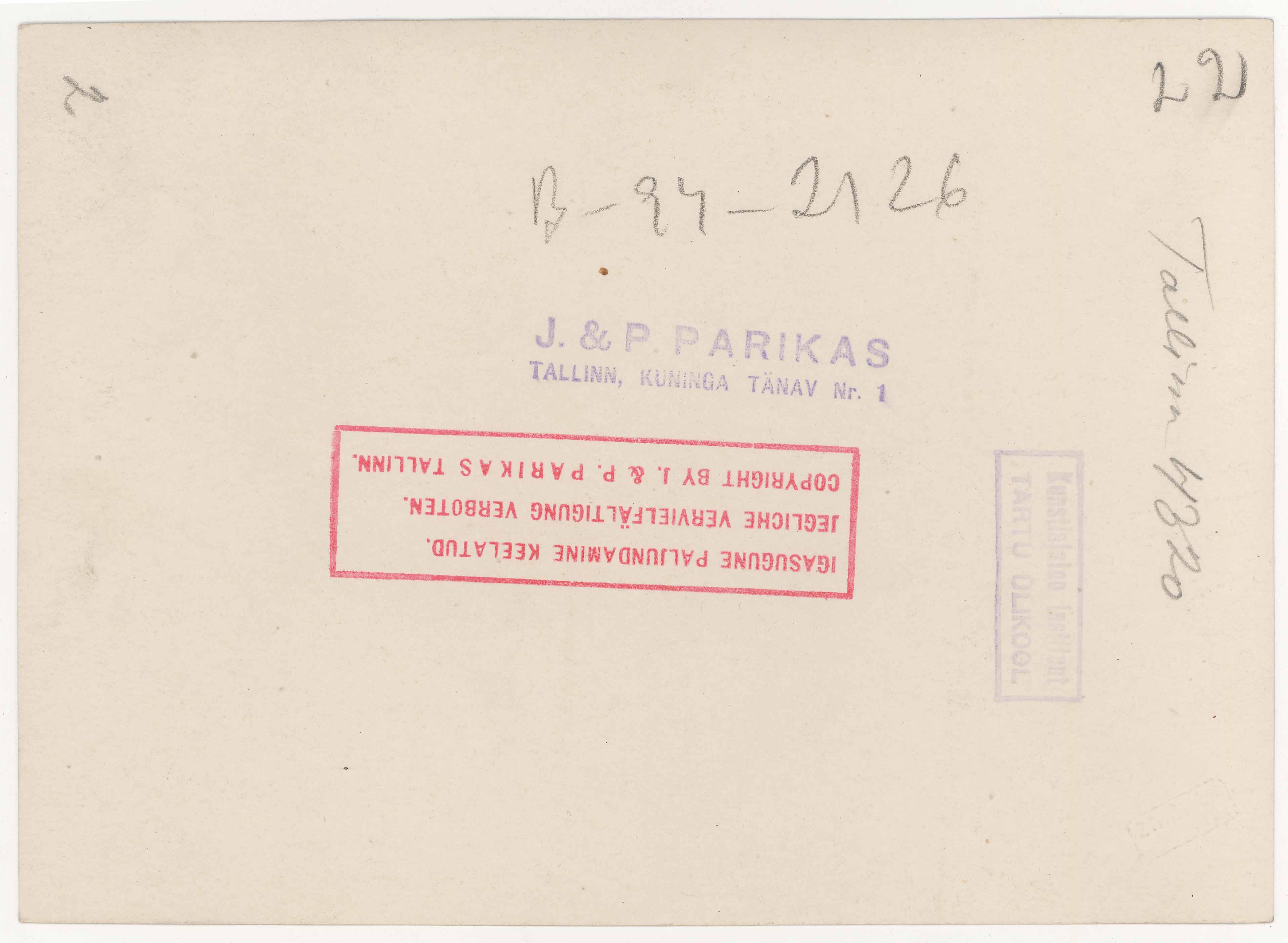| dc.description | Tekst foto tagaküljel: Tallinn 4320. Templid: Parikas; Instituut | et |