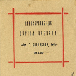| dc.description | Nelinurkses raamistuses tekst: КНИГОХРАНИЛИШЕ / СЕРГIЯ ЗОБКОВА. / Г. ВАРНАВИНЪ | |