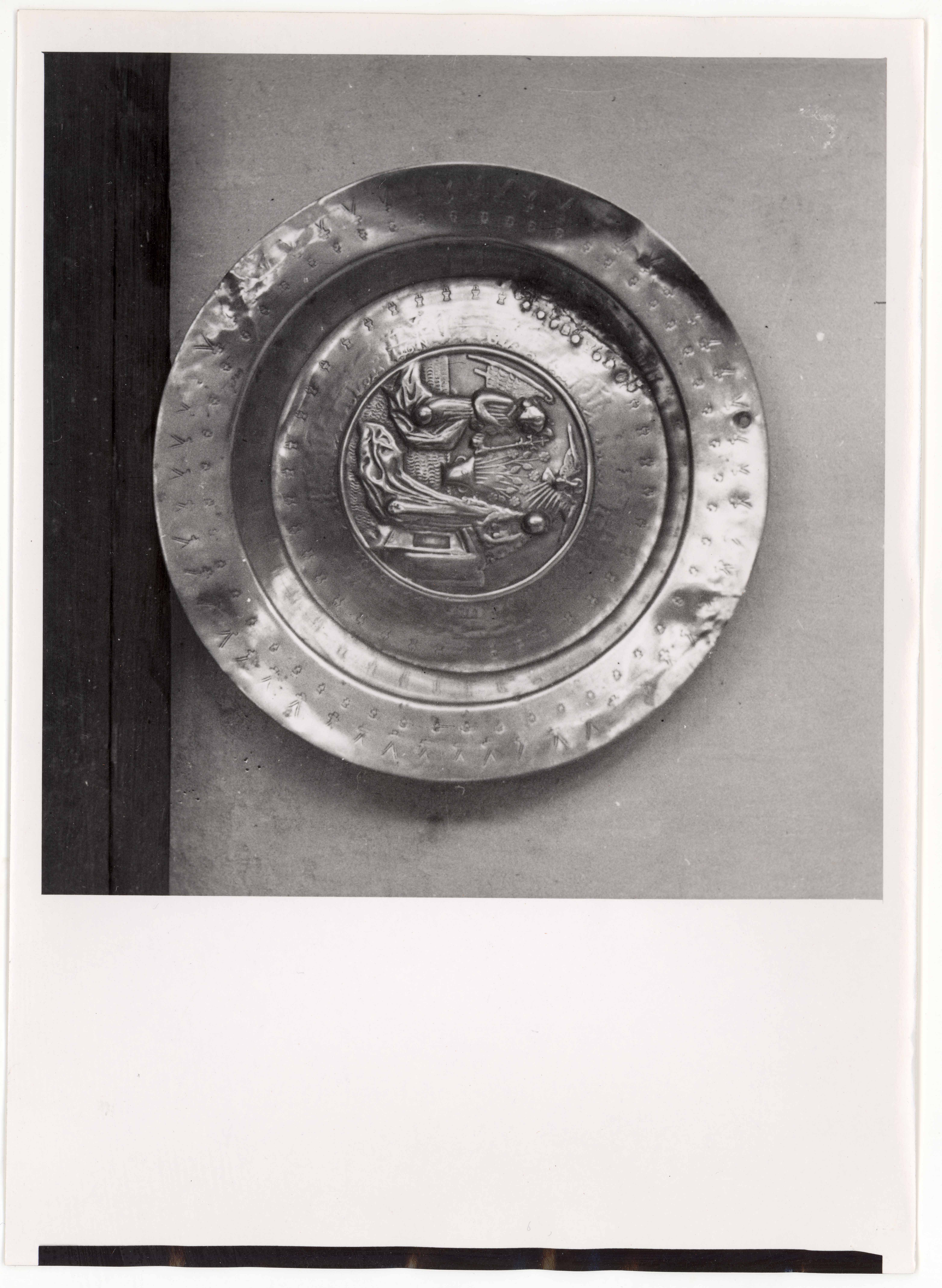 Saaremaa. Hõbedast(?) ristimisvaagen Maarja kuulutuse stseeniga