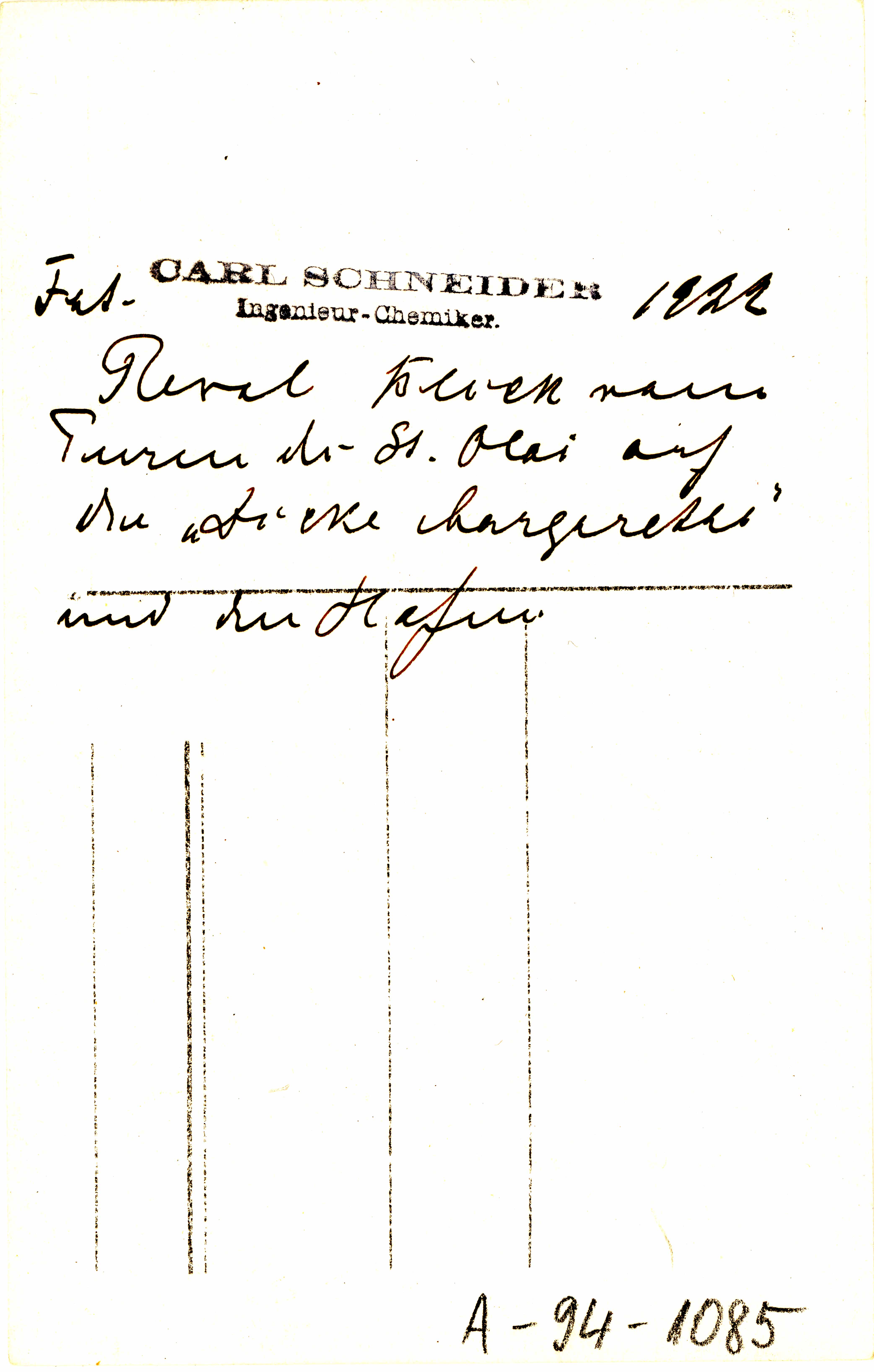 | dc.description | Tekst foto tagaküljel: 1922. Reval: Blick vom Turm der St. Olai auf der "Dicke Margarethe" und der Hafen. Tempel: Schneider | et |
