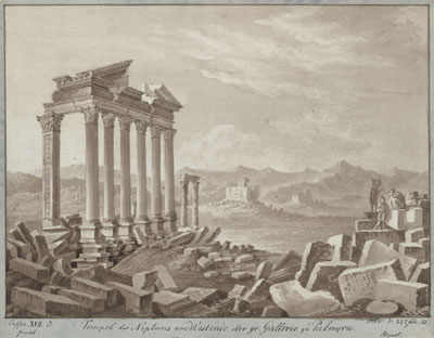 Tempel des Neptuns am Westende der gr. Gallerie zu Palmyra