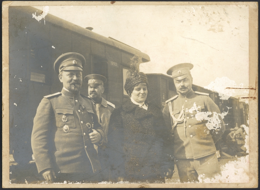 Ludvig Puusepp esimese abikaasa Maria Puusepa (sünd. Kotšubei) ja tundmatute sõjaväelastega I maailmasõja ajal