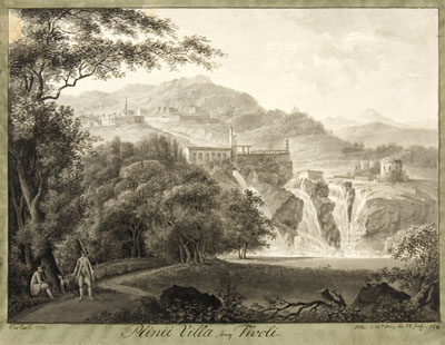 Itaalia, kohavaated, maastikud, baltisaksa, kunst, joonistus, seepia (kunst), 19. saj., 1820-ndad