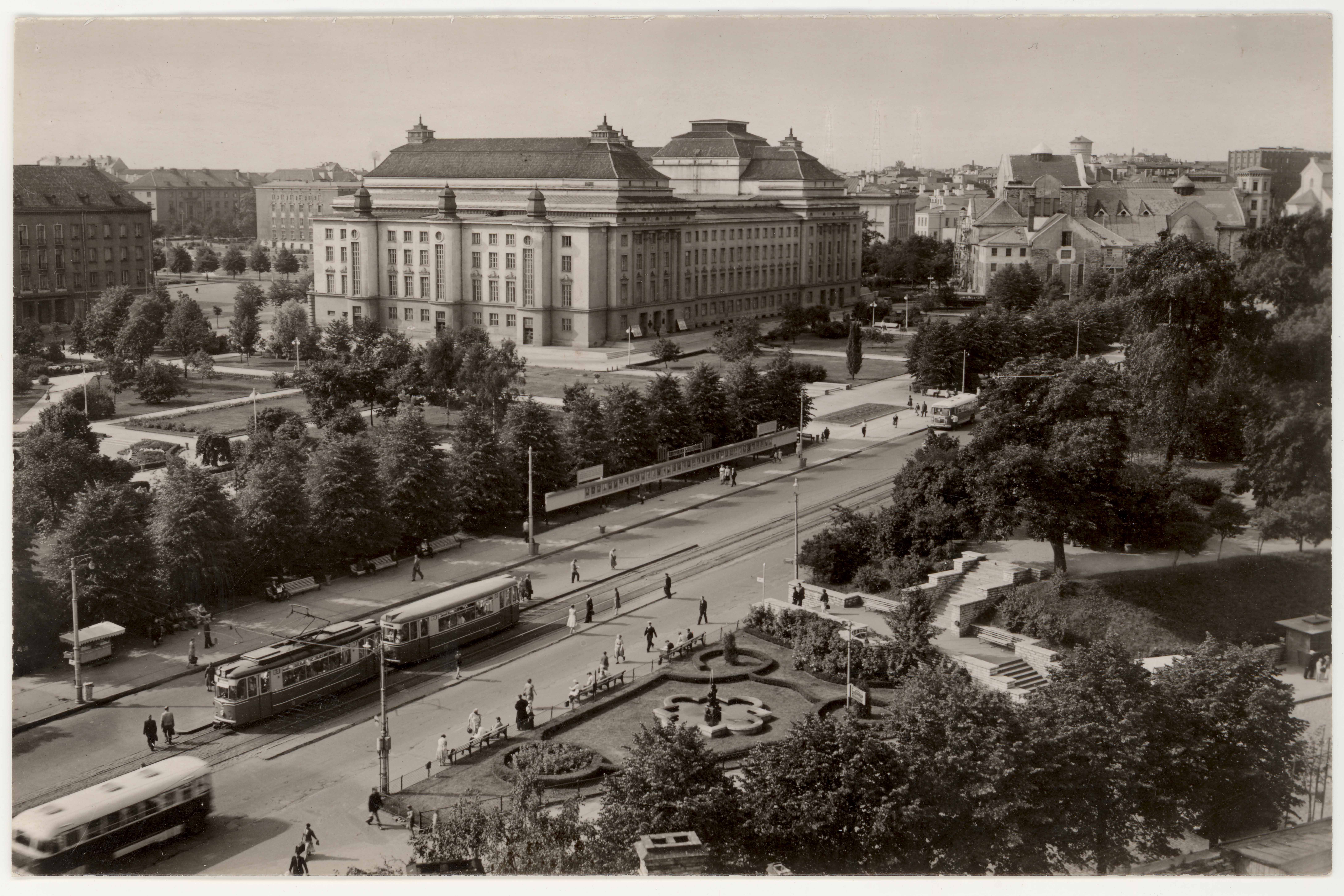Tallinn. Estonia teatri tagafassaadi vaade kirdest. Vaade Pärnu maanteele