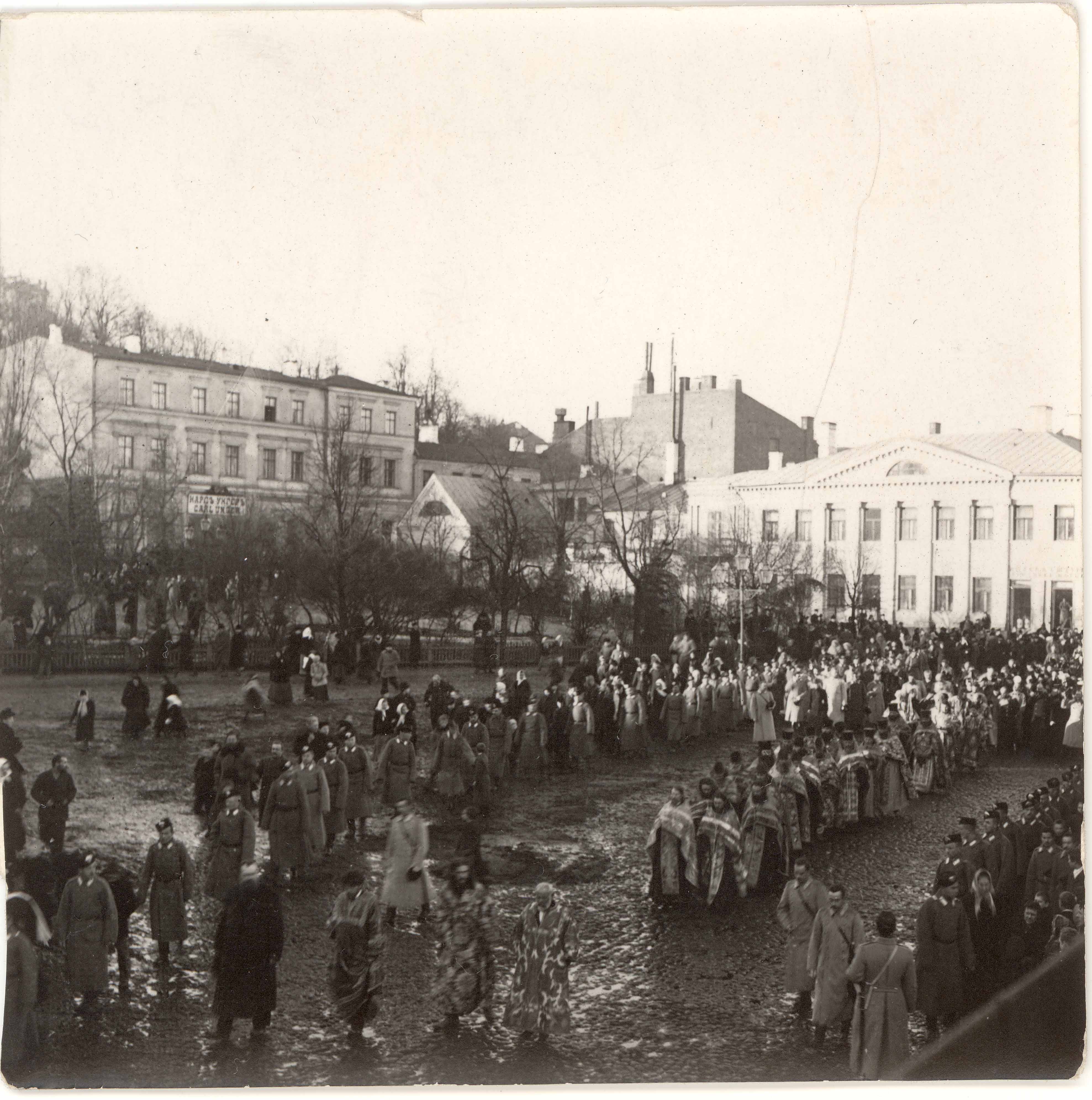 Tartu. Protsessioon Barclay platsil Kaubahoovi (hävinud) ees Küüni tänaval.