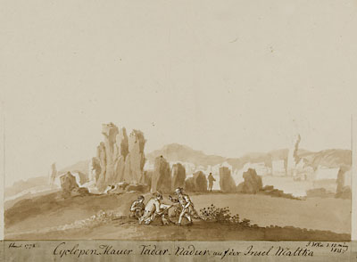Malta, kohavaated, maastikud, baltisaksa, kunst, joonistus, seepia (kunst), 19. saj., 1820-ndad