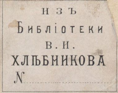 Nelinurkses raamistuses: ИЗЪ / Библiотеки / В. И. / ХЛѢБНИКОВА / №...