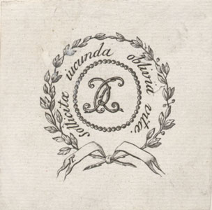 Loorberpärg, mille keskel monogramm CR. Joonises keskel deviis: Sollicitae iucunda oblivia vitae. all vasakul: №