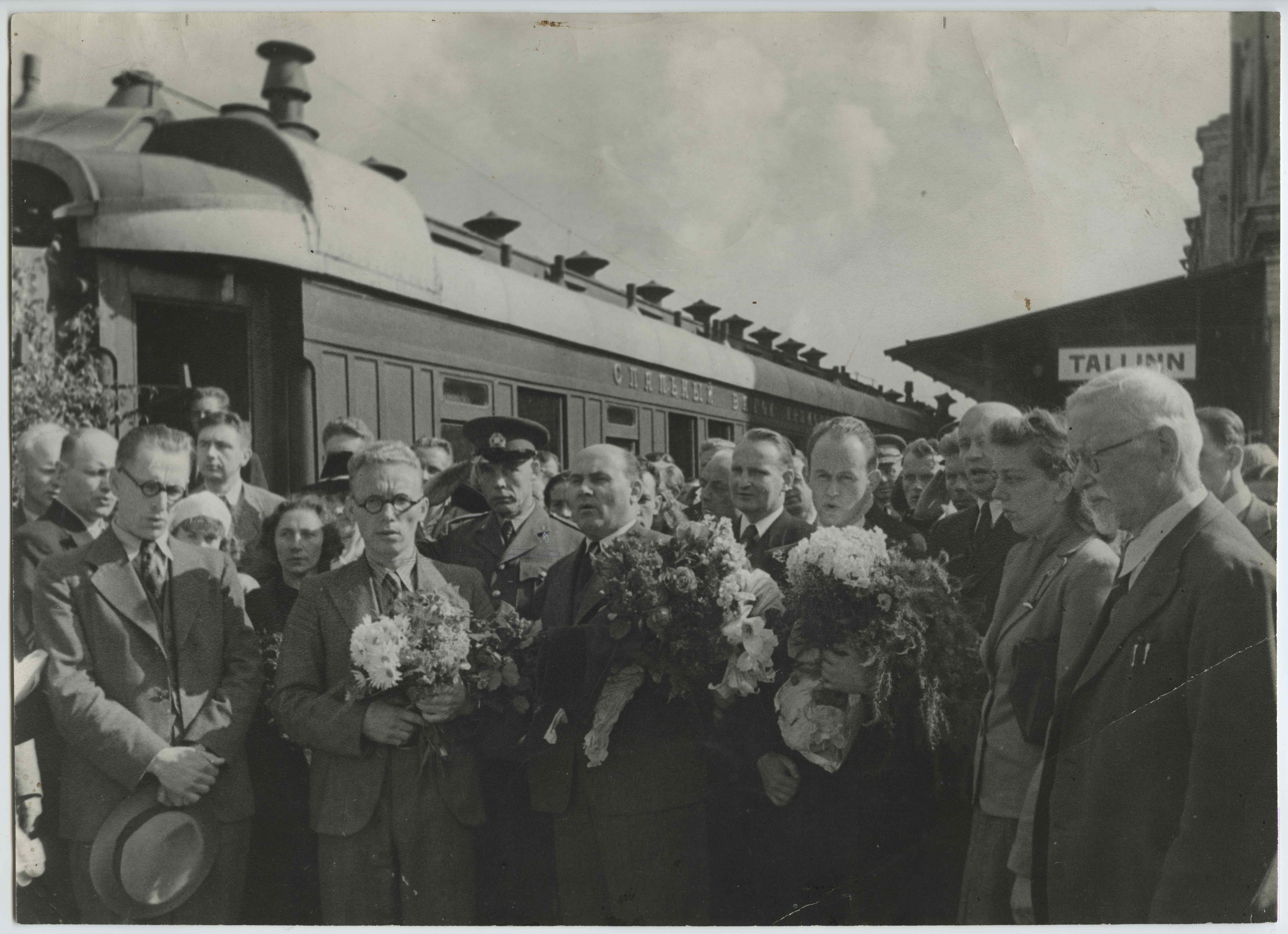 Eesti Riigivolikogu delegatsioon Tallinnas Balti jaamas enne ärasõitu Moskvasse Eesti NSV NSV Liitu vastuvõtmisele