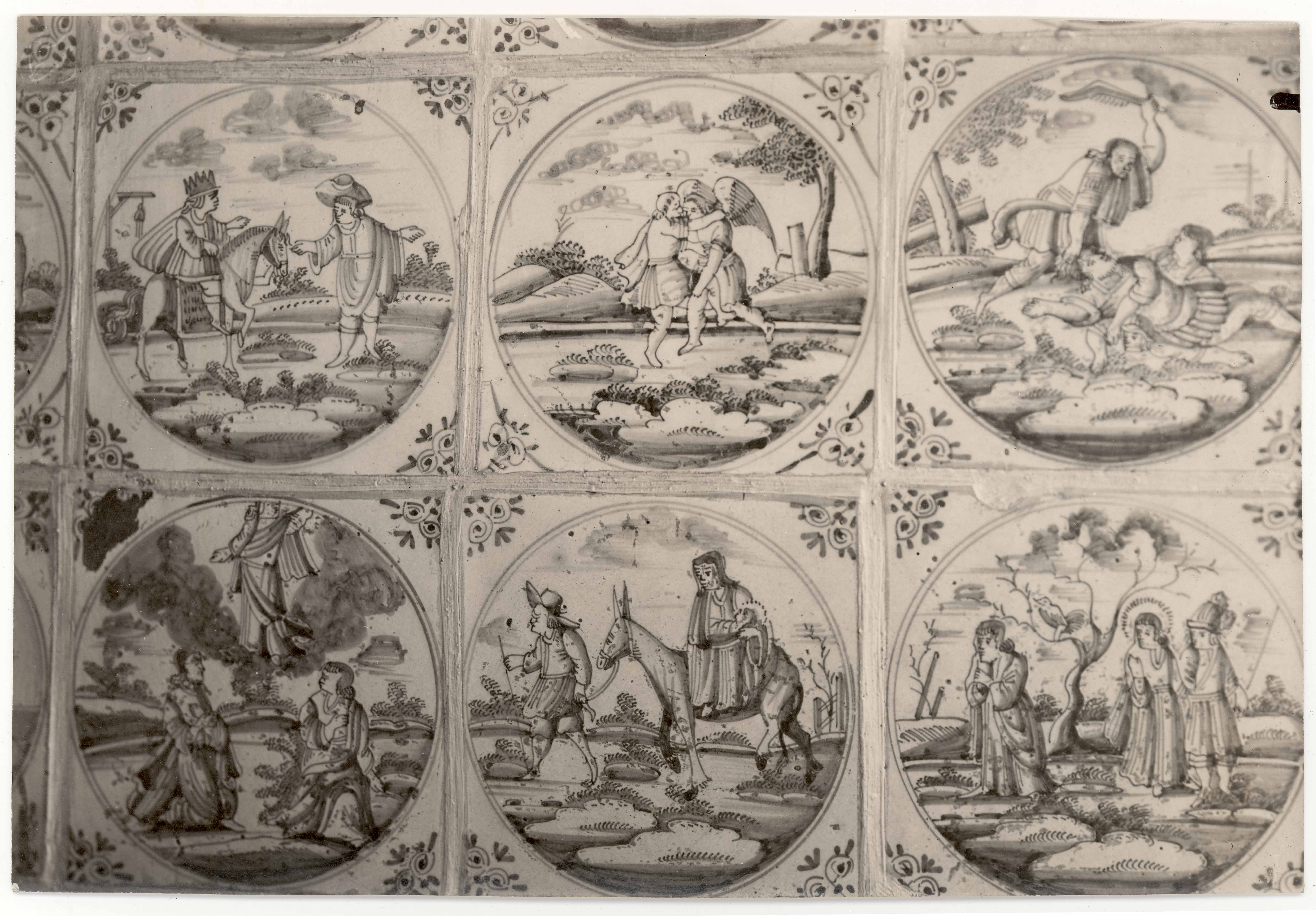 Narva. Eha tn 2. Hollandi seinakahlid (17. saj). Detail. Vana ja Uue Testamendi teemad. 6 stseeni