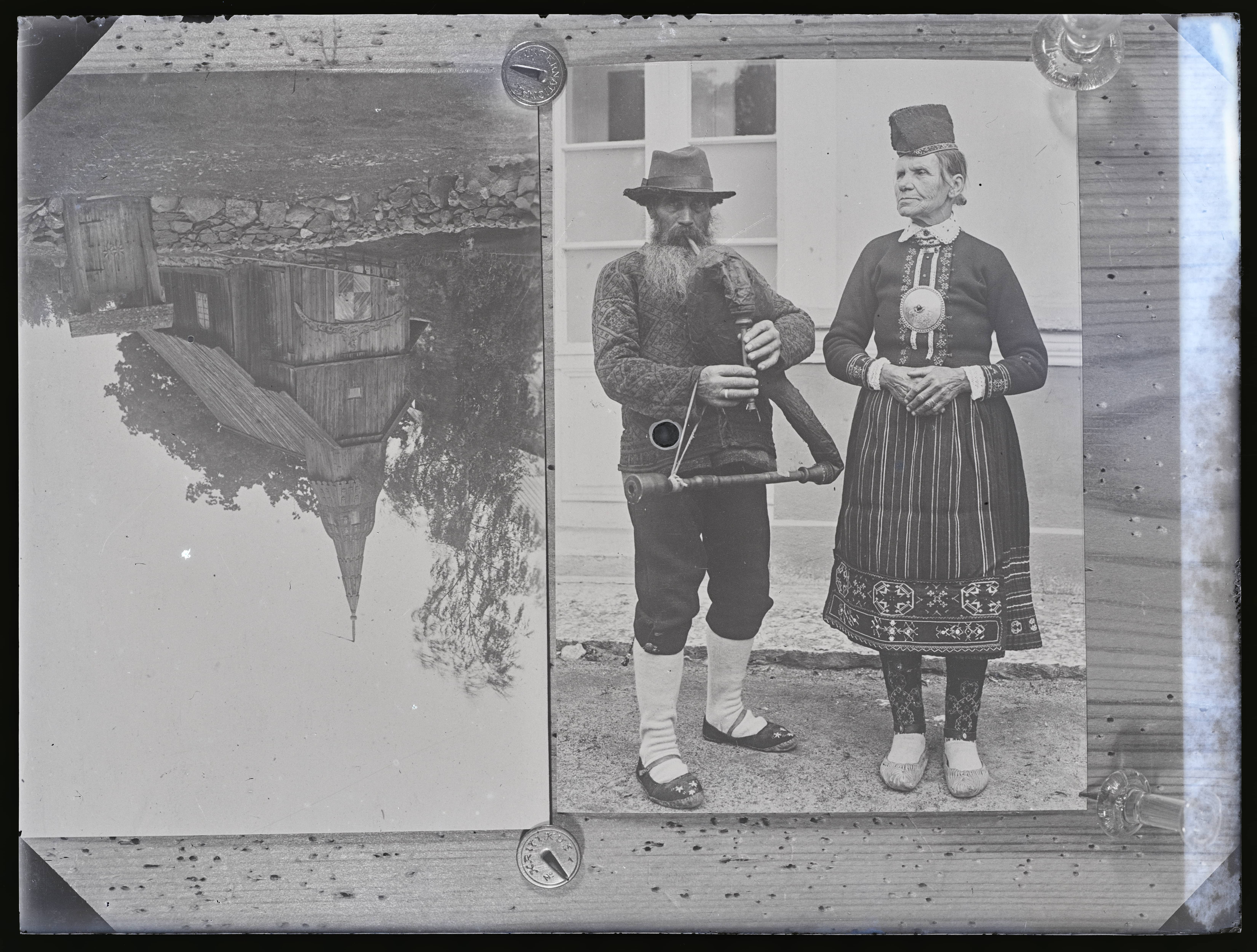 1. Ruhnu puukirik. 2. Rahvariietes mees ja naine