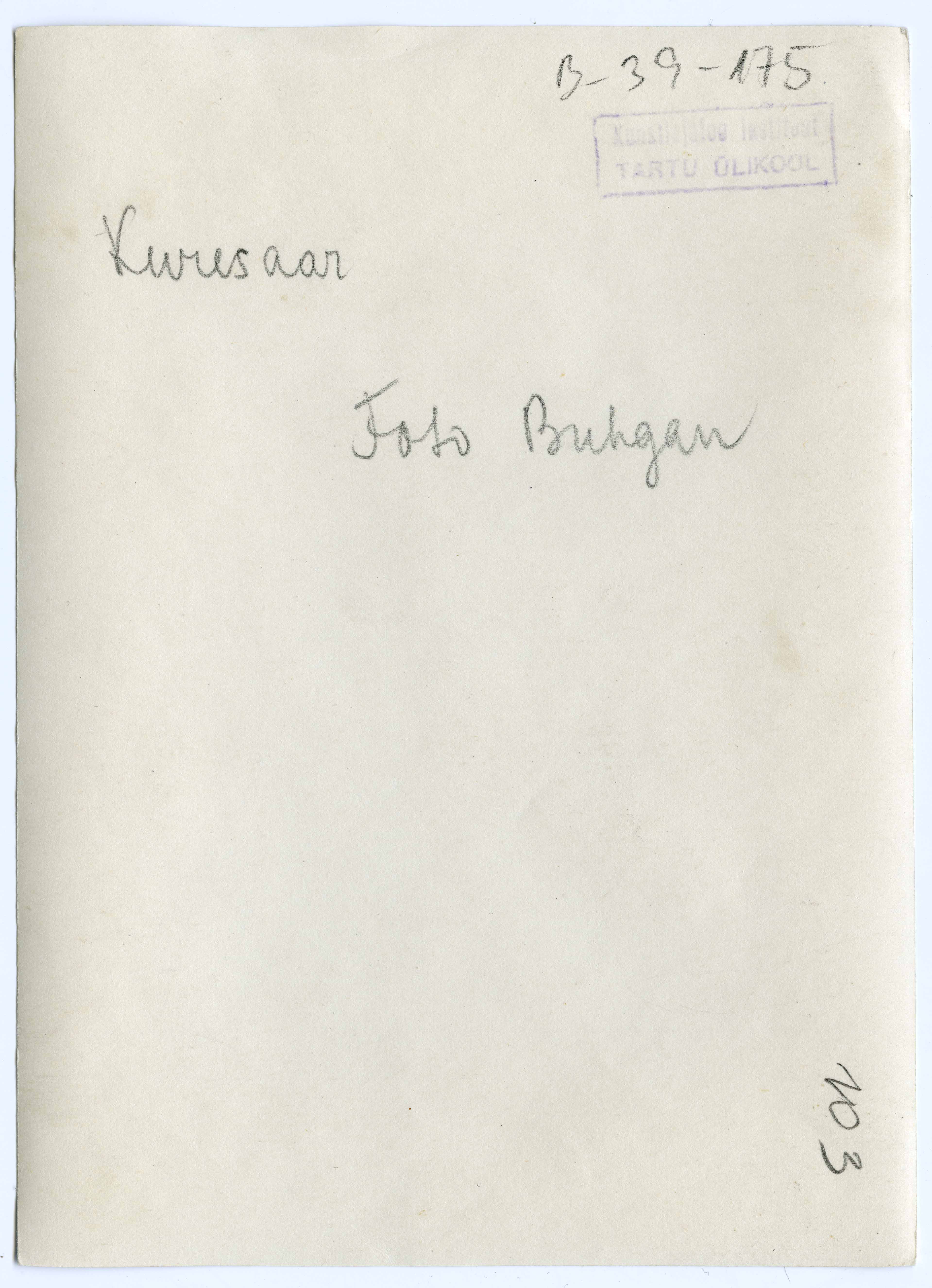 Tekst negatiivi ümbrikul: Foto Buhgan ... Tempel: Instituut