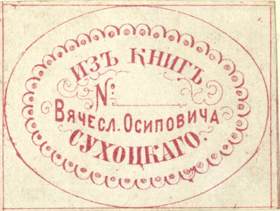 Nelinurkses raamistuses ovaal. Ovaalis: ИЗЪ КНИГЪ / № / Вячесл. Осиповича / СУХОЦКАГО.