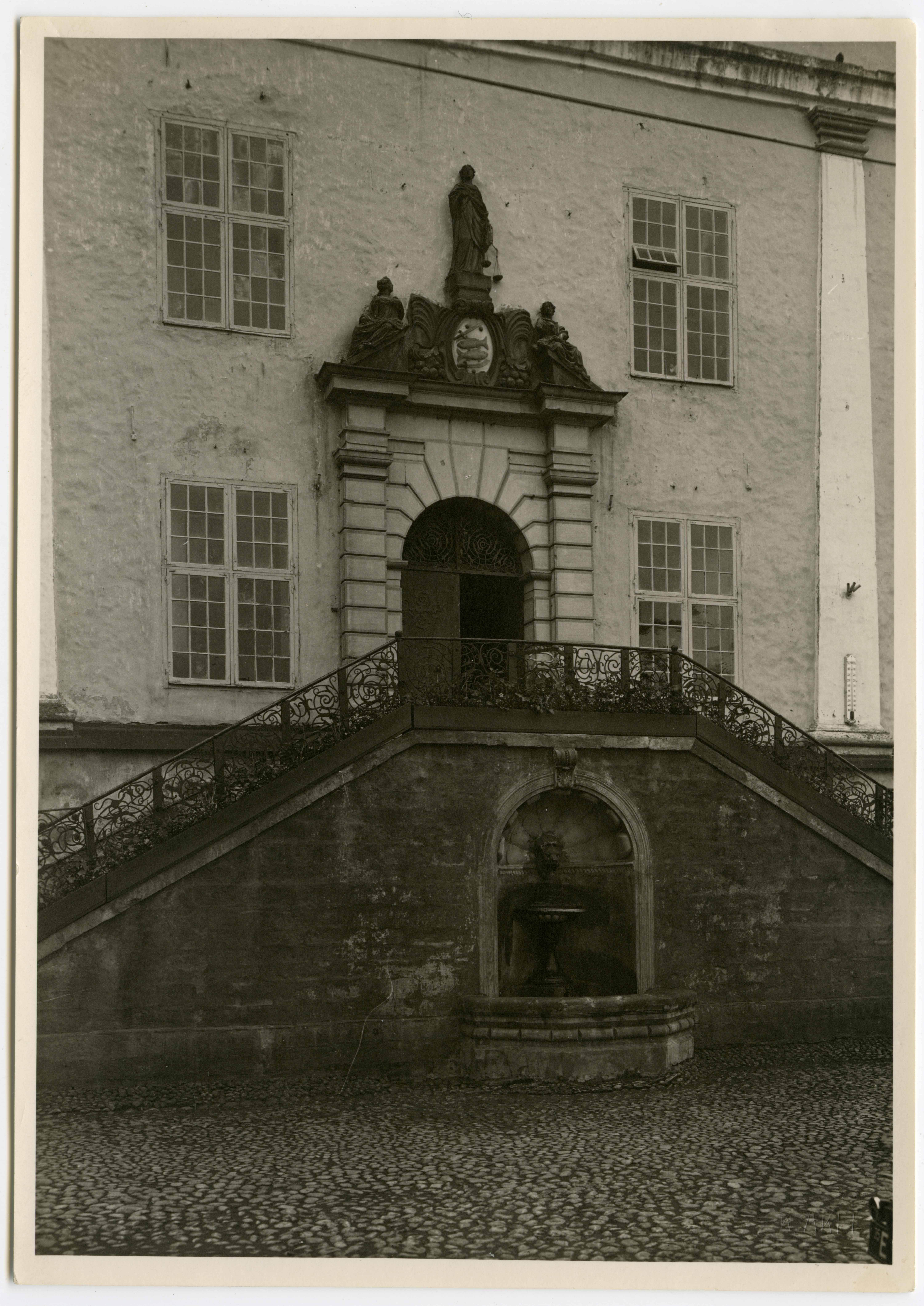 Narva. Raekoja portaali ja välistrepi eestvaade