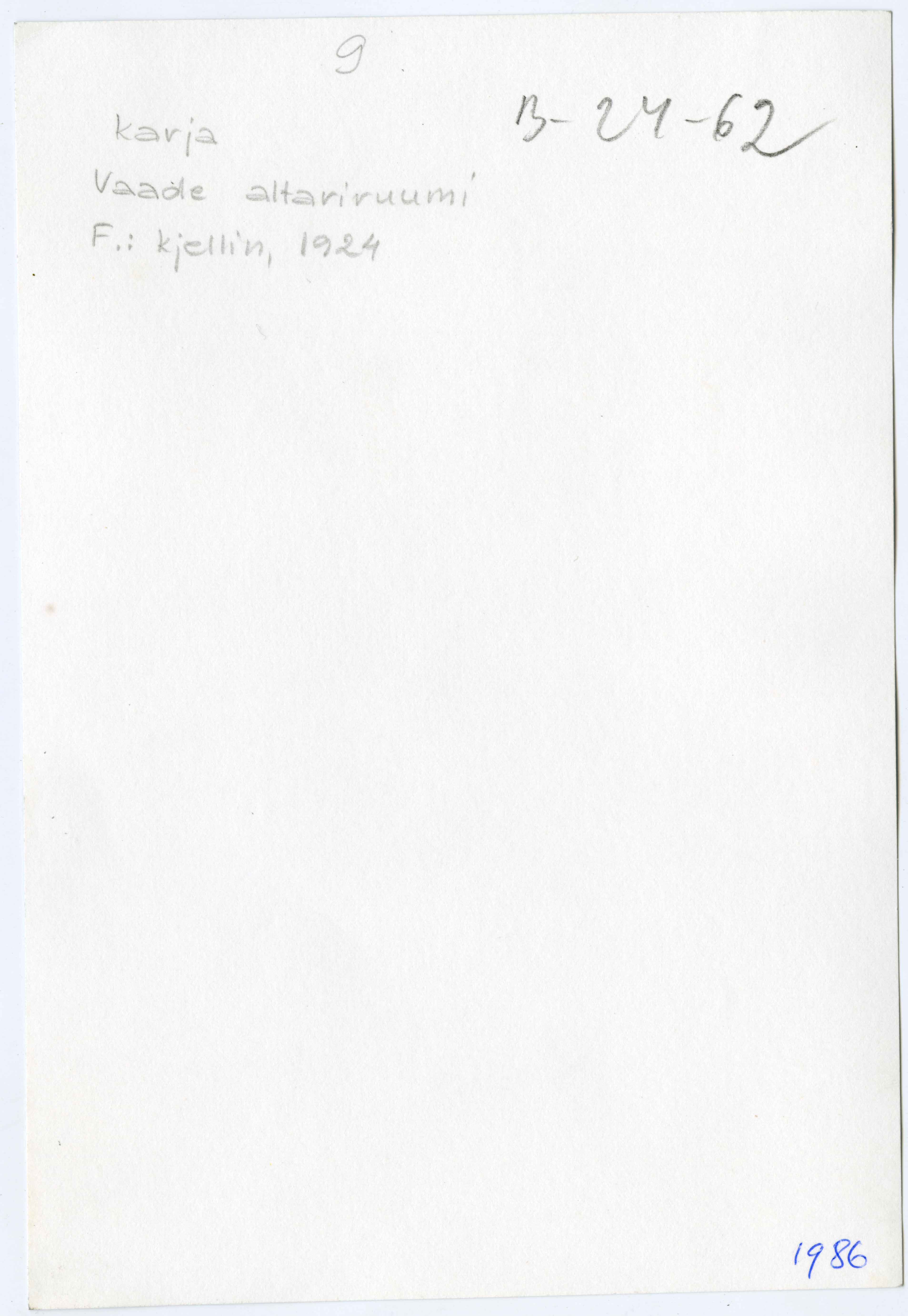 Tekst negatiivi ümbrikul: Karja. Photo Kjellin, 1924. Vaade altariruumi. (1986) Tempel: Instituut