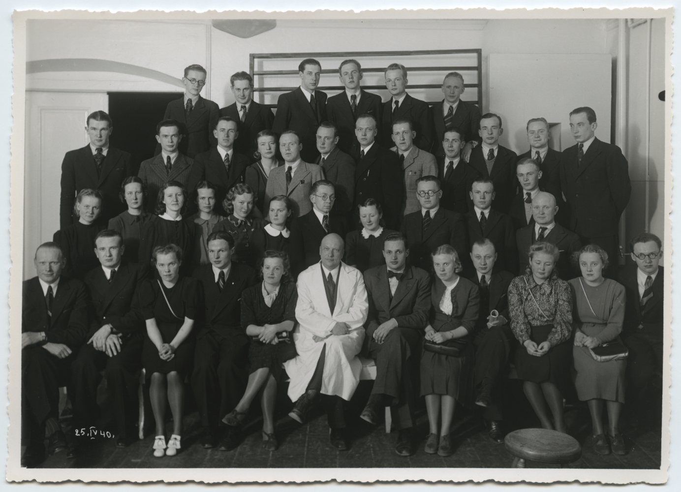 Arstiteaduse ajaloo loengutest 1939.-1940. a. osavõtjad sisehaiguste polikliiniku ruumes koos õppejõud Herbert Normanniga. Grupipilt