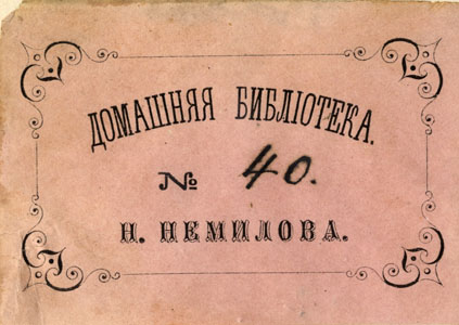 | dc.description | Nelinurkses ornamenteeritud raamistuses: ДОМАШНЯЯ БИБЛIОТЕКА / № / Н. НЕМИЛОВА. | |