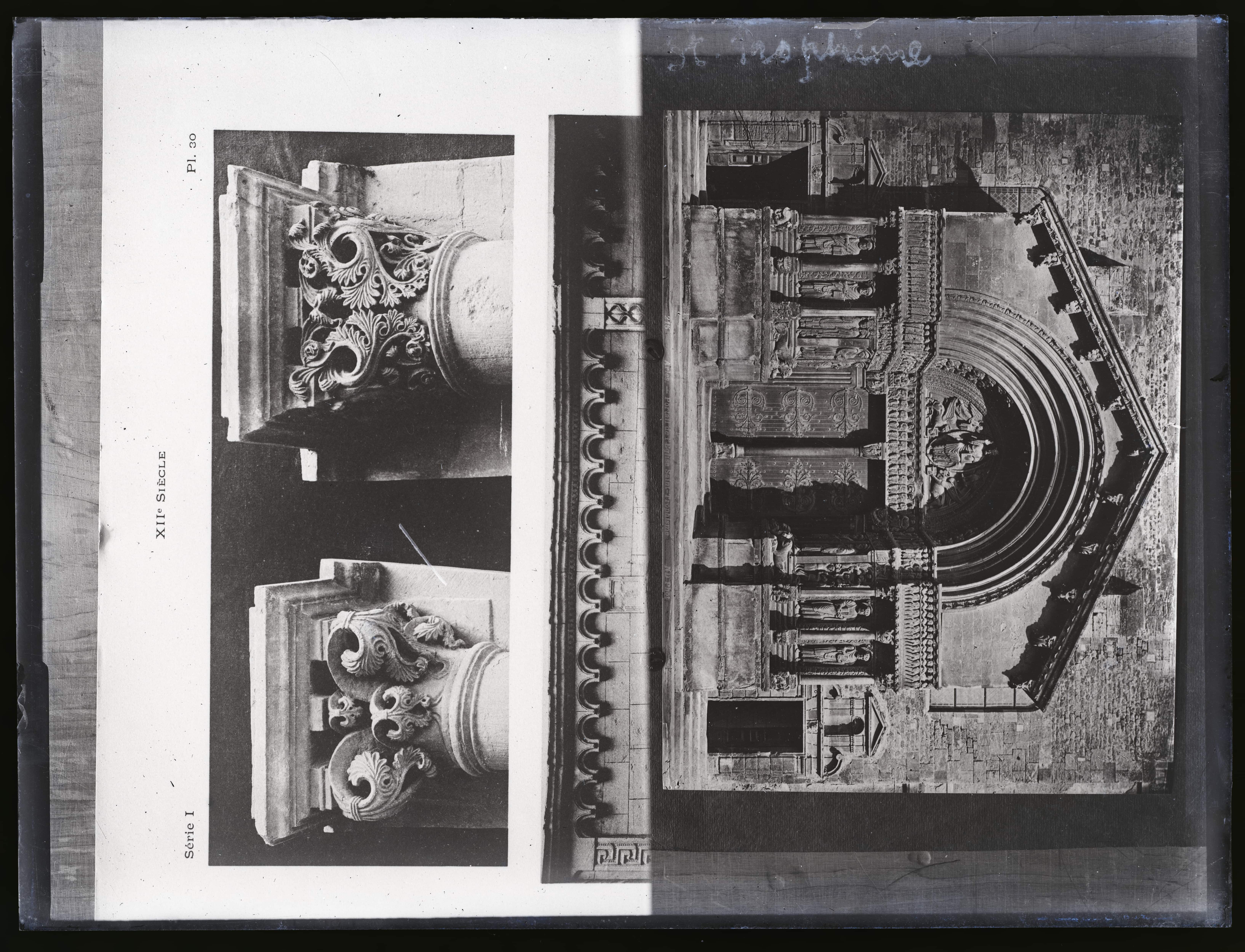 Prantsusmaa. Romaani stiilis kiriku portikus ja sambakapiteelid