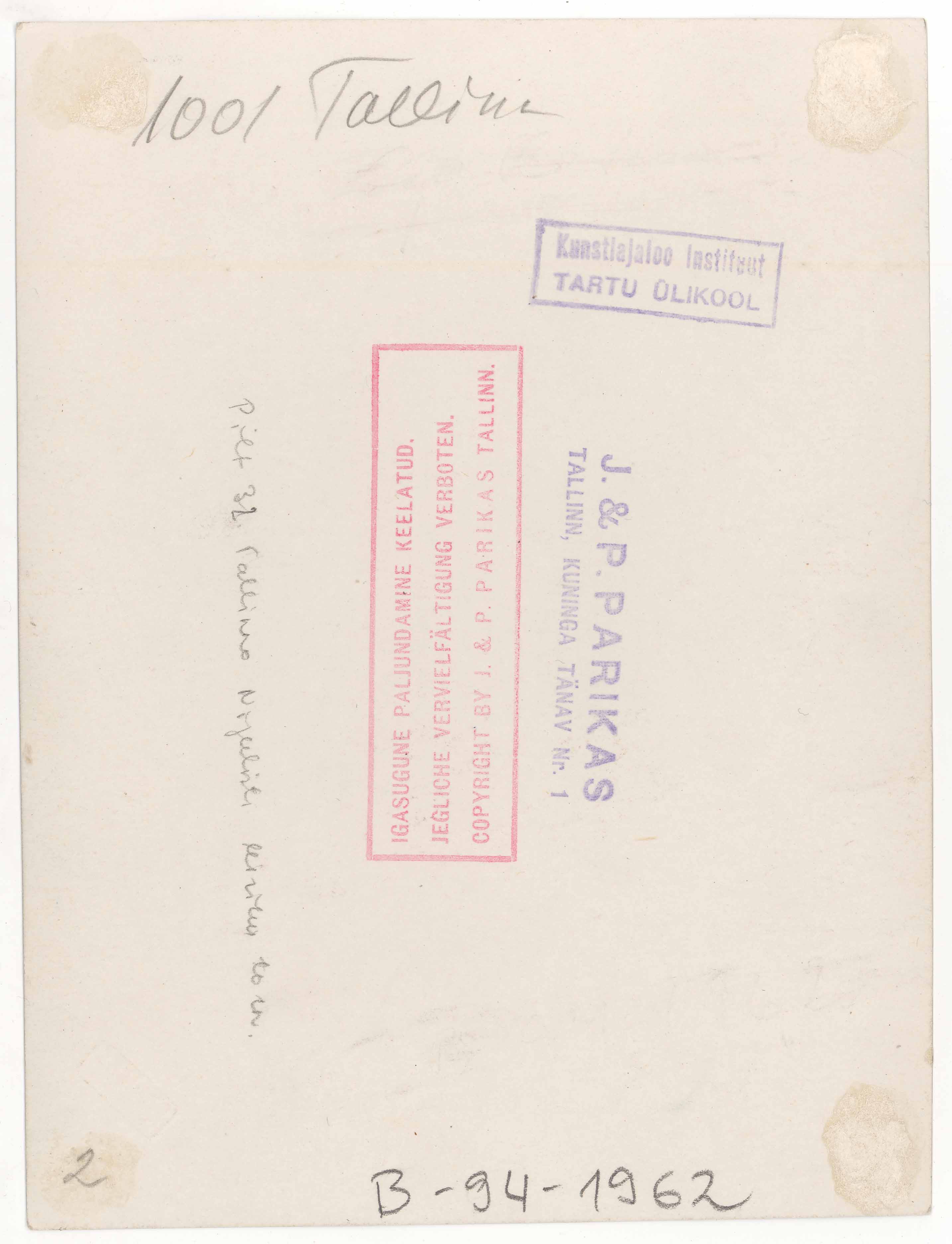Tekst foto tagaküljel: 1001 Tallinn. Pilt 32. Tallinna Niguliste kiriku torn. Templid: J&P; Instituut