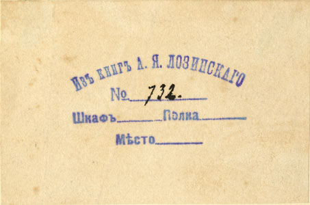 Tempel: Изъ книгъ А.Я. Лозинскаго / № / Шкафъ Полка / Мѣсто