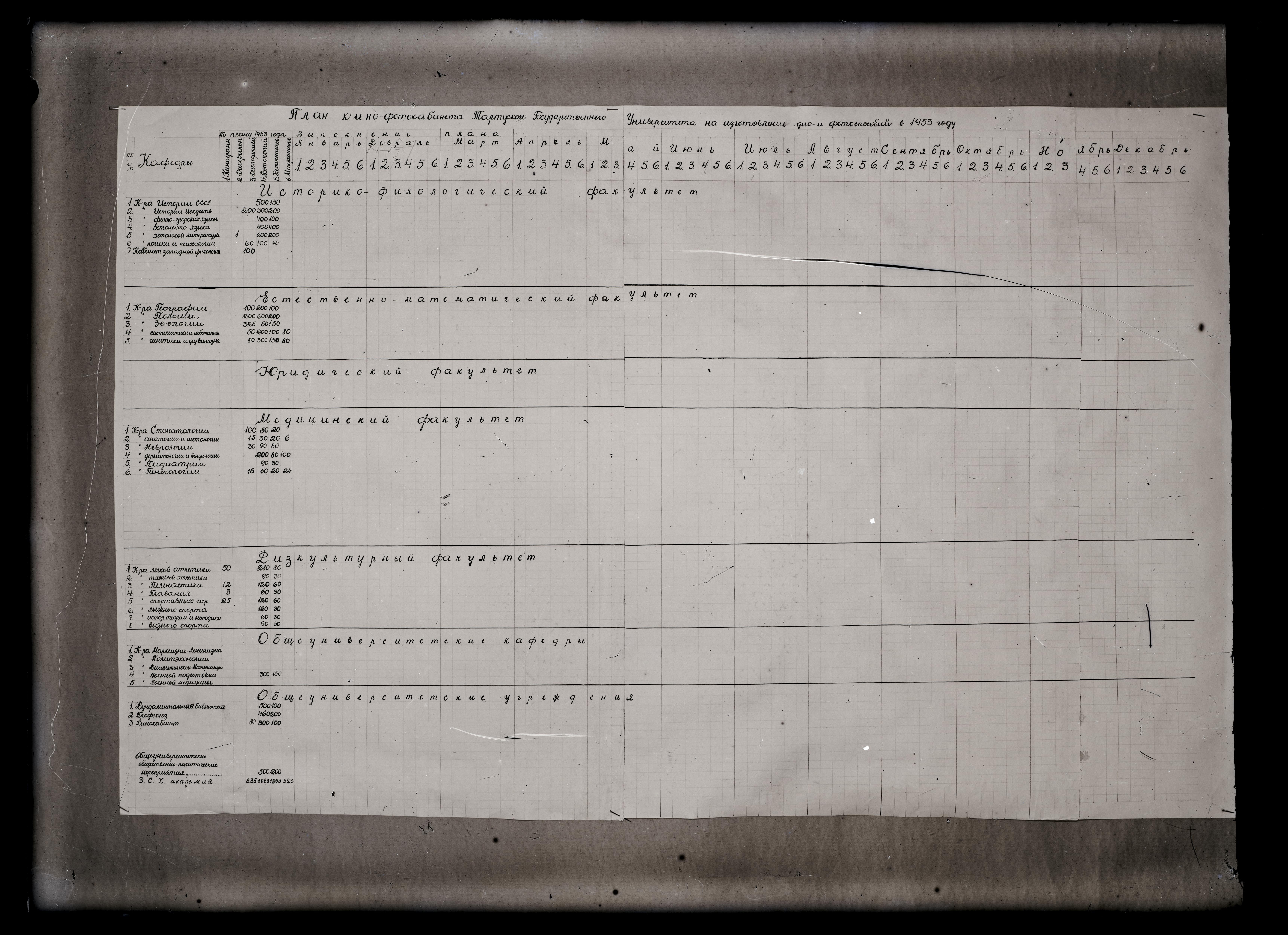 Tartu Riikliku Ülikooli kino- ja fotokabineti diapositiivide ja fotode valmistamise plaan 1953.a-ks