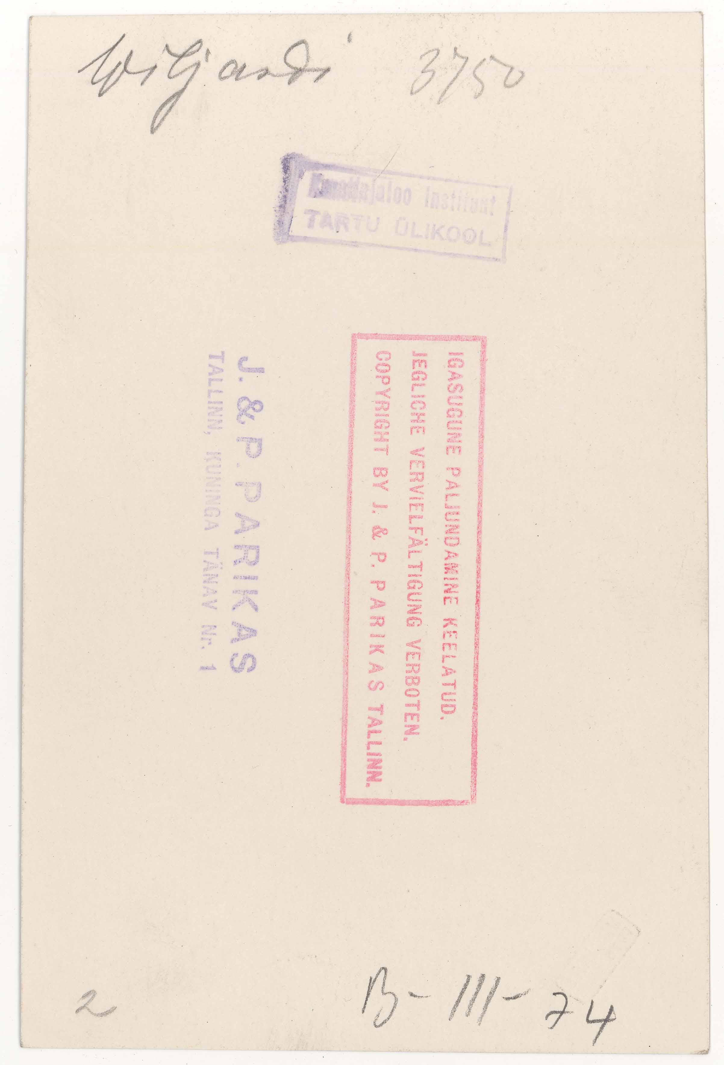 | dc.description | Tekst foto tagaküljel: Wiljandi 3750. Templid: Instituut; J&P | et |