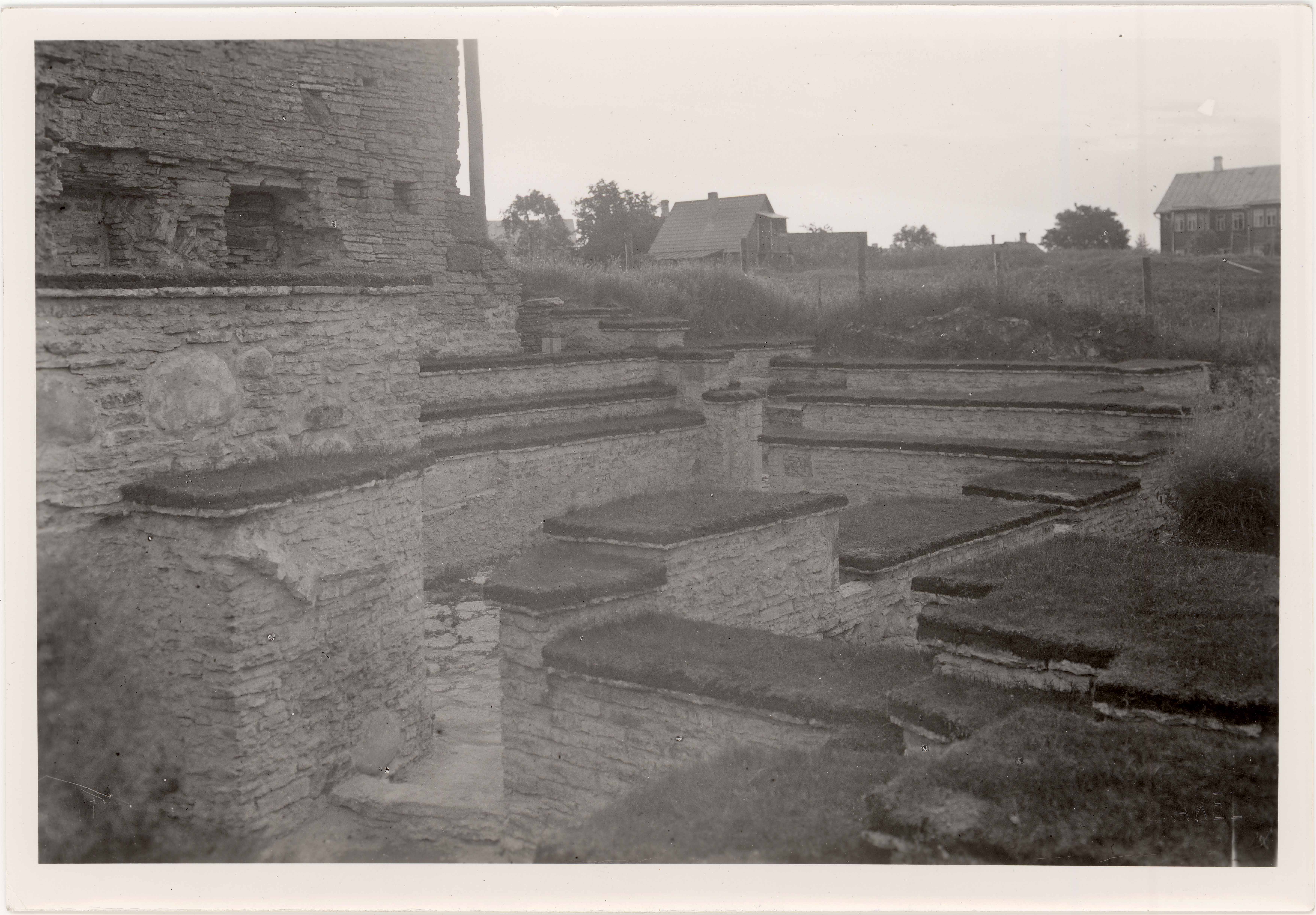 Tekst foto tagaküljel: Restureeritud ja konserveeritud alusmüürid. 1934. Tempel: Kabinett; Pirita