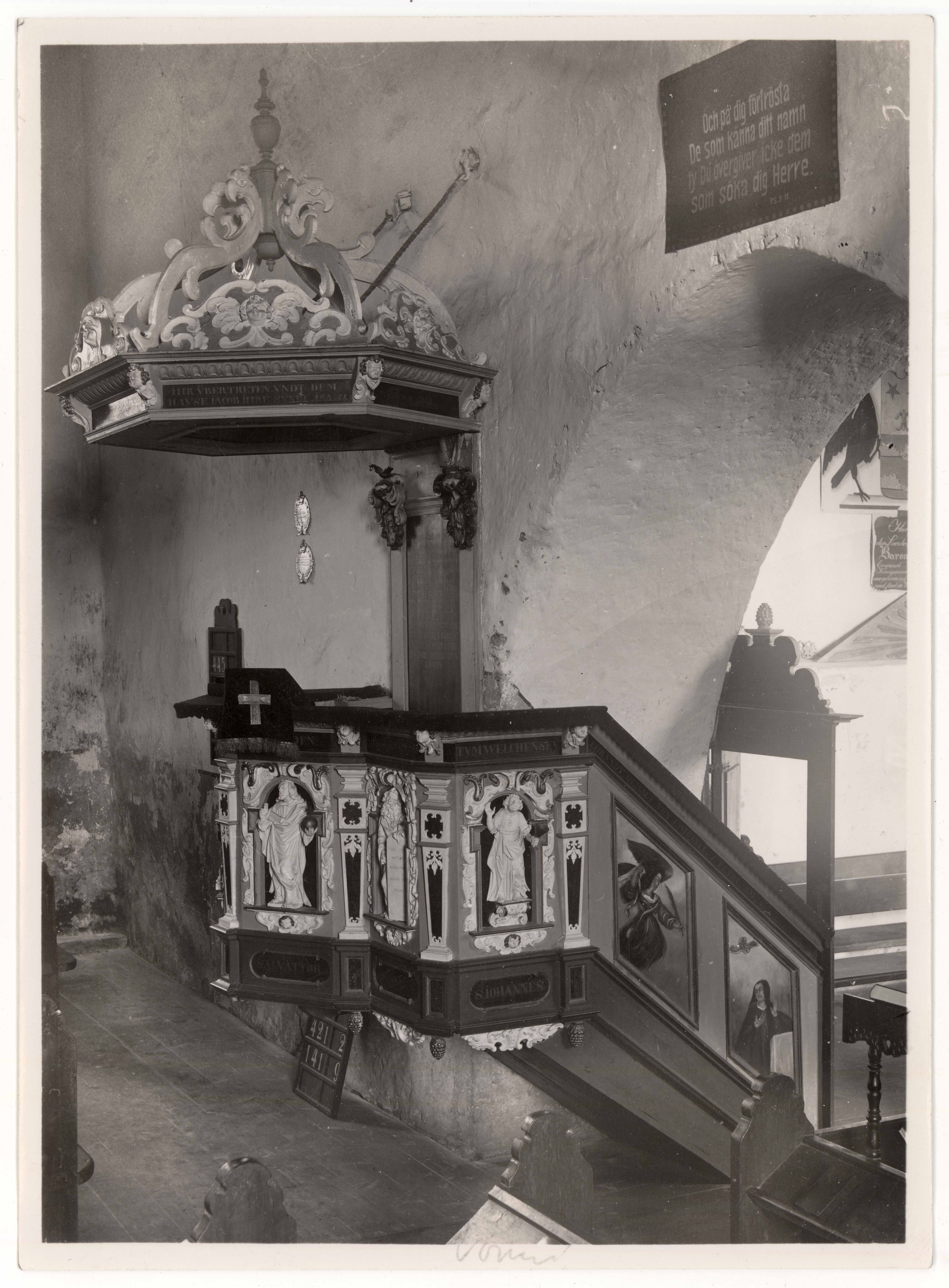 Vormsi Olevi kiriku kantsli külgvaade