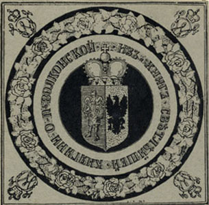 | dc.description | Nelinurkses raamistuses roosidest sõõr ja selle keskel kotka ning tiivulise sõjamehega vapp. Joonises all keskel signeering: У. И. 1904 ümber vapi: ИЗЪ КНИГЪ СВЋТЛЙЋНІЕЙ КНГИНИ О. П. ВОЛКОНСКАОЙ;"Иваск | |