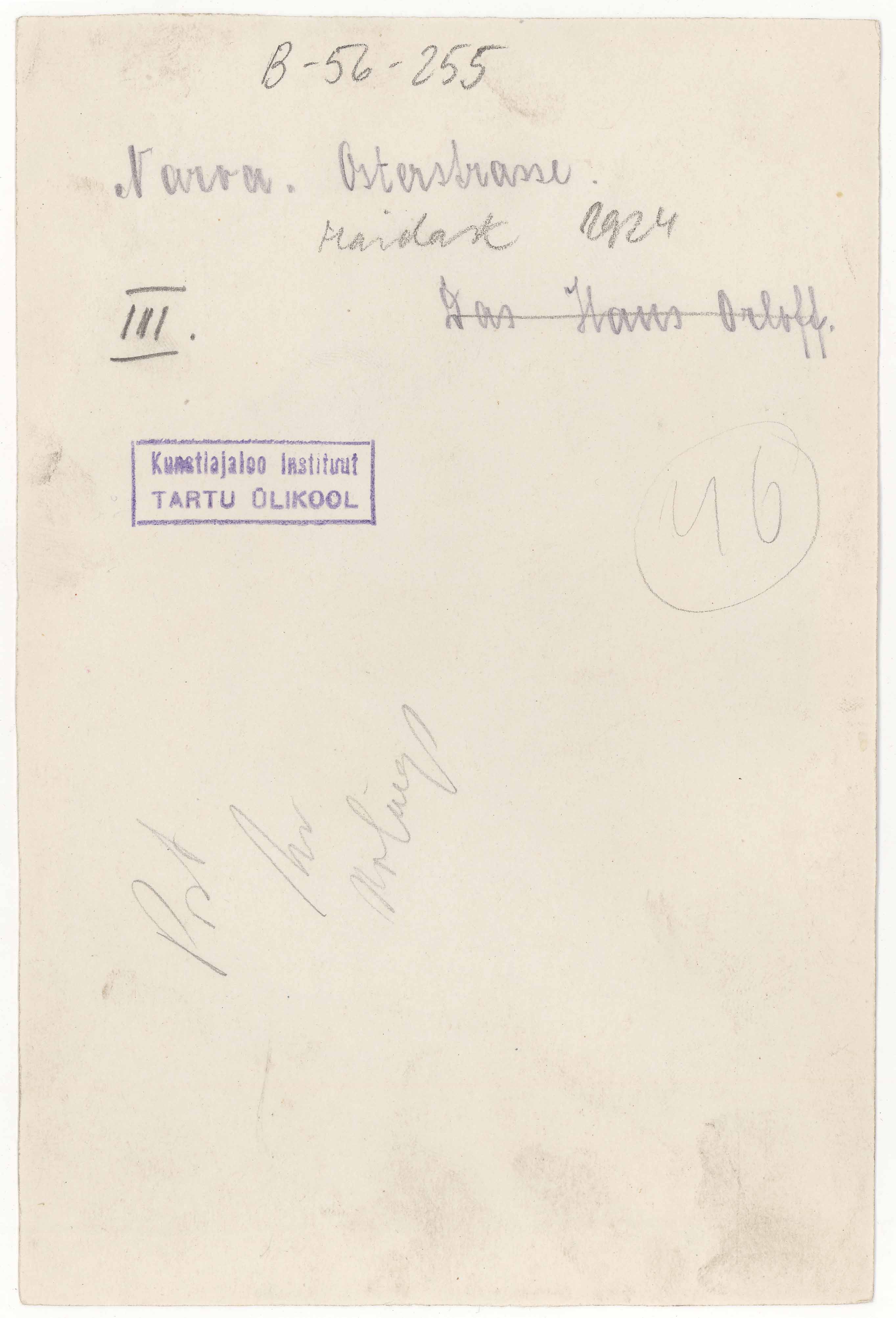 Tekst foto tagaküljel: Narva. Die Osterstrasse. Das Haus Orloff. Tempel: Instituut