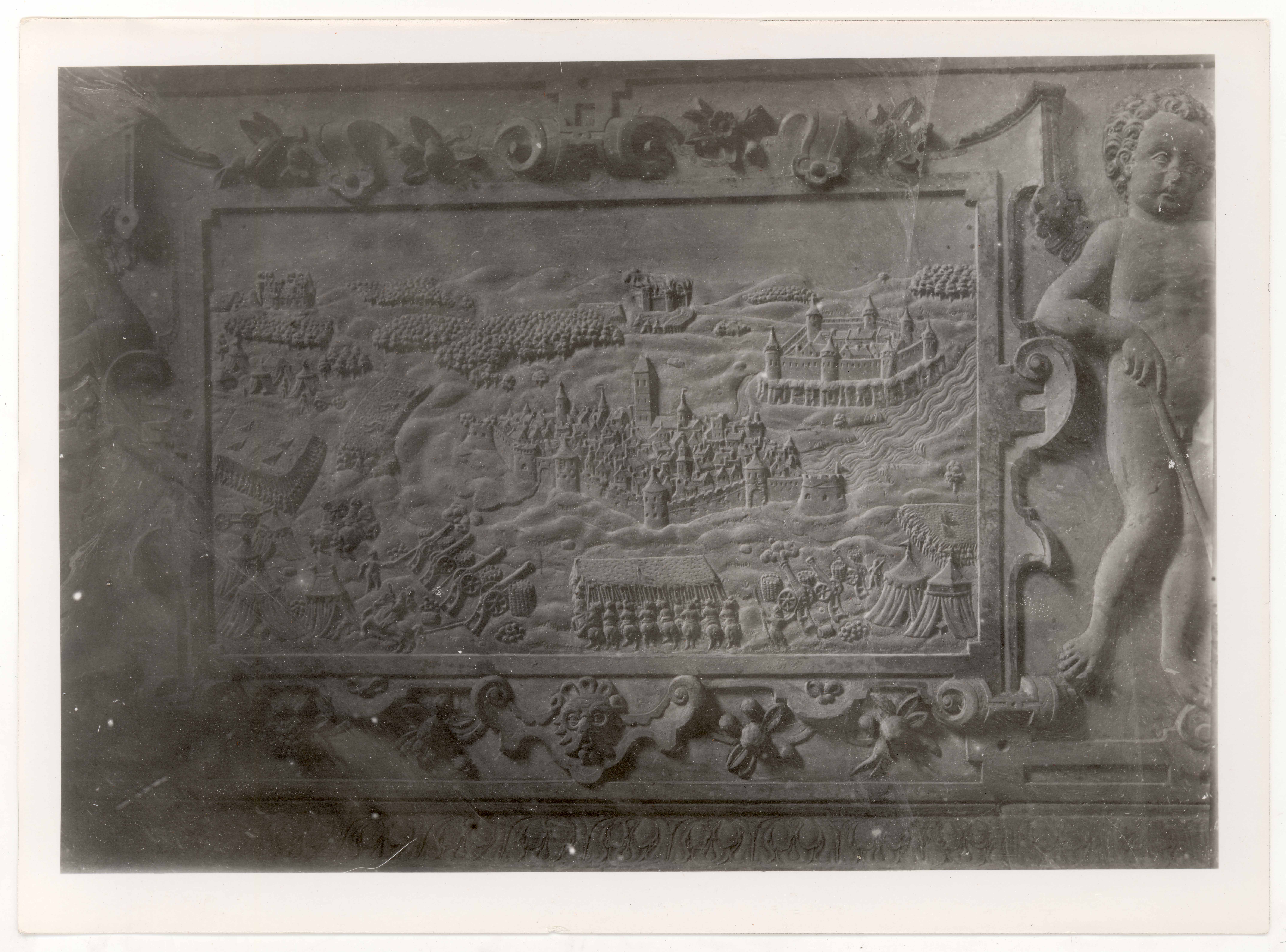 Tallinn. Toomkirik. Pontus de la Gardie hauamonumendi sarkofaagi esikülje keskosa Narva vallutamise reljeef