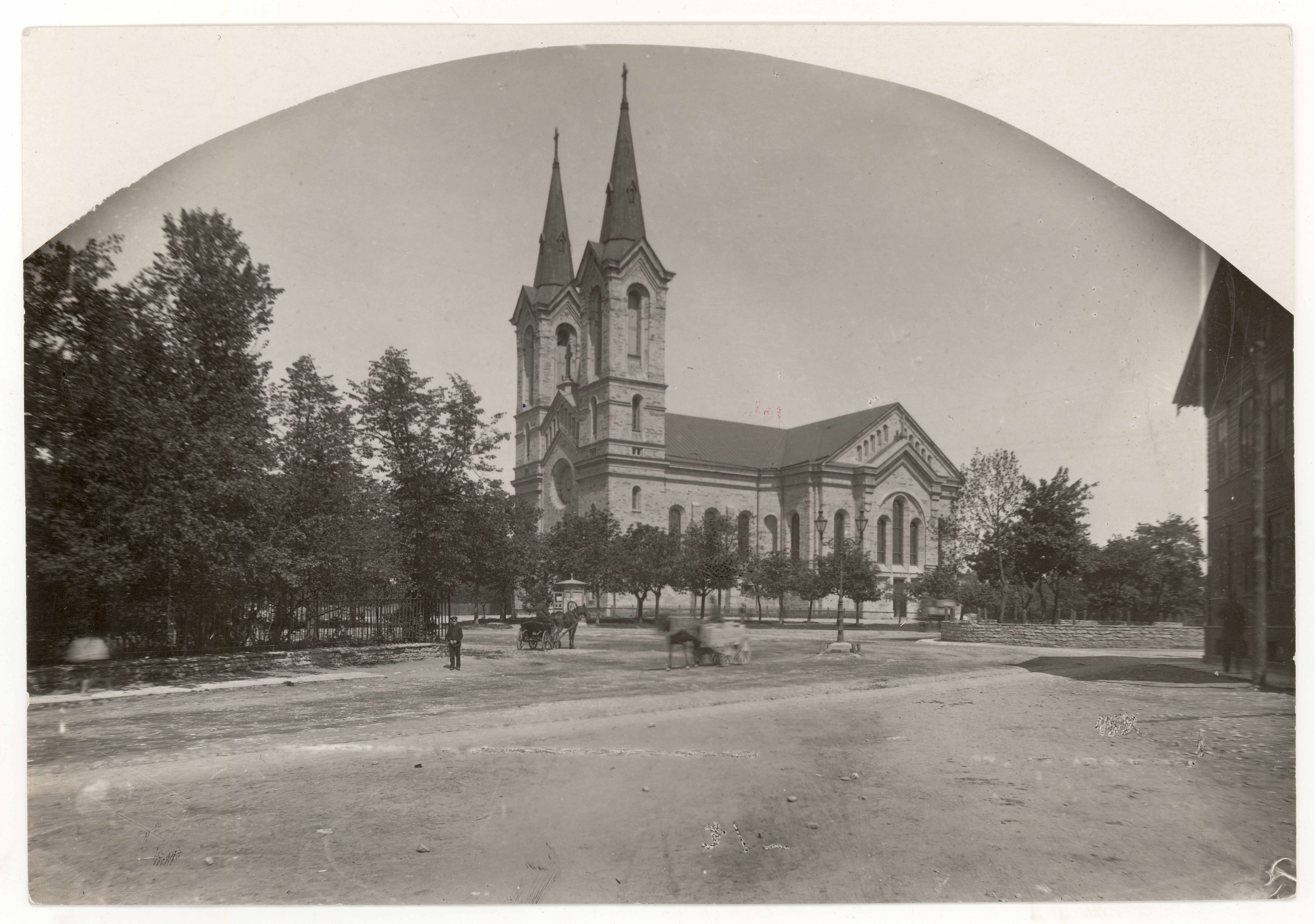 Tallinn. Kaarli kiriku vaade edelast, praeguse Rahvusraamatukogu krundilt.