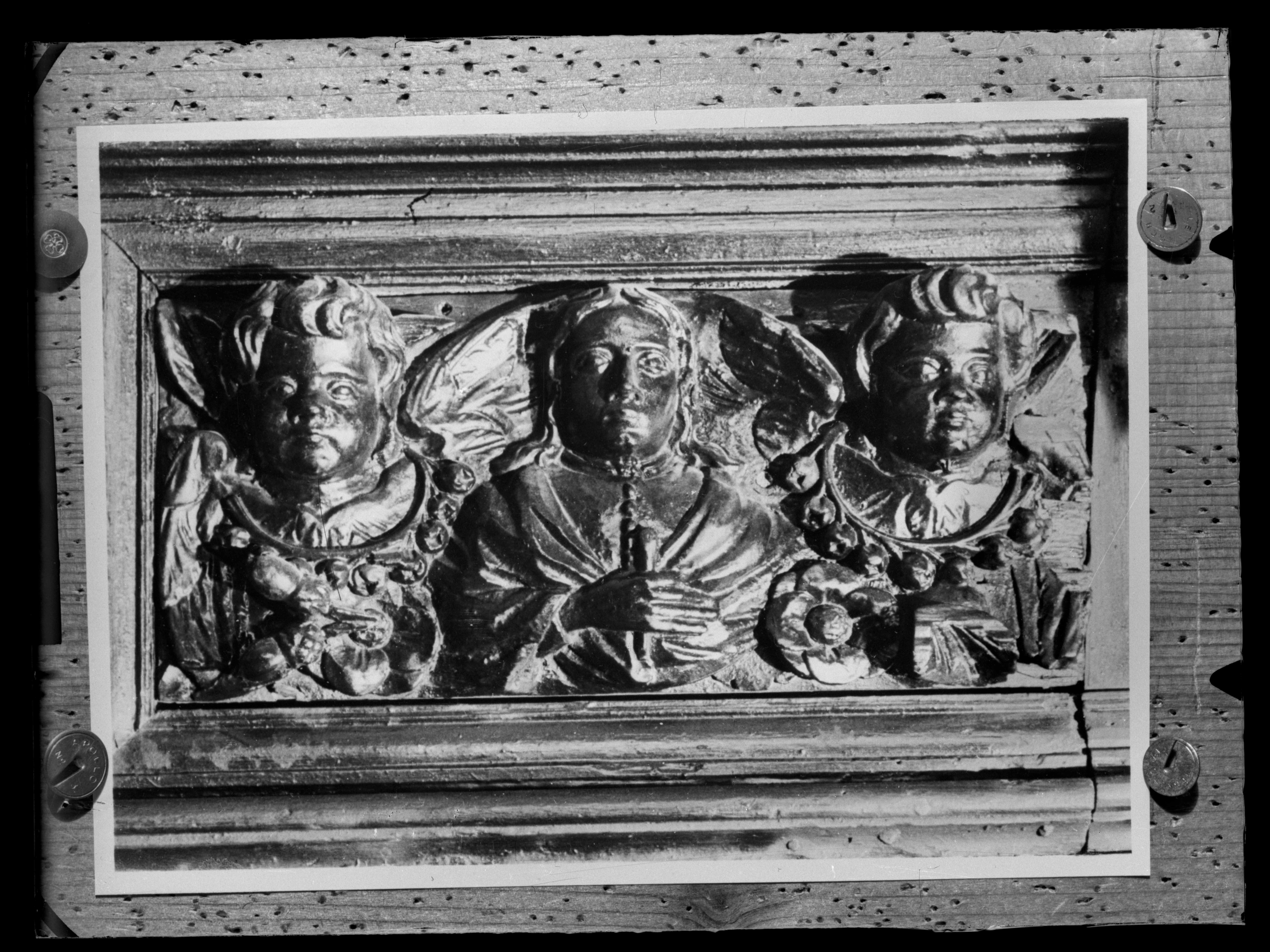 Tallinna Raekoja Raesaali puitnikerdfriisi lõik. Armbrust 1696