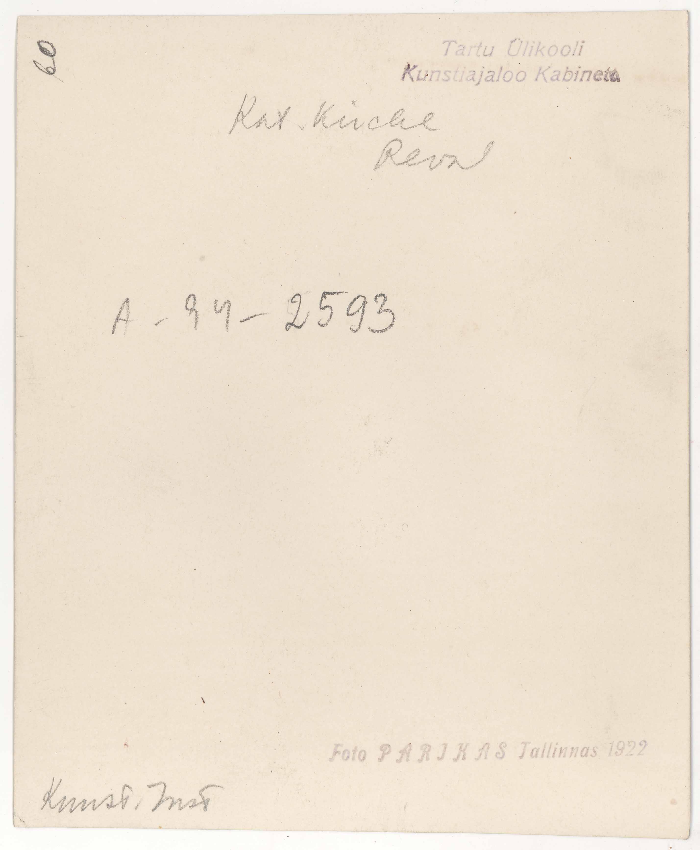 | dc.description | Tekst foto tagaküljel: Kat. Kirche Reval. Kunst. Inst. Templid: Parikas 1922, Kabinett | et |