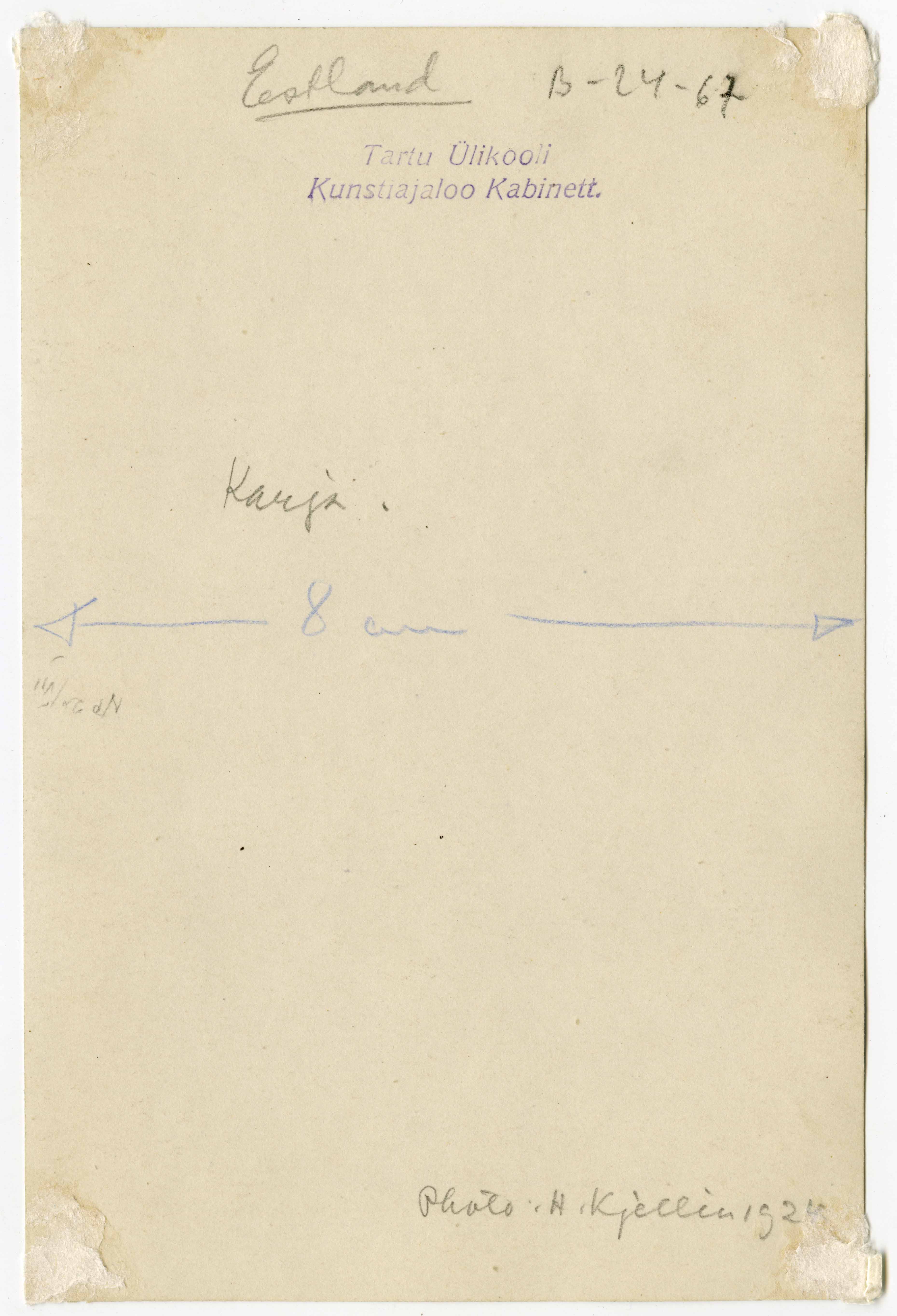 Tekst foto tagaküljel: Karja. Photo H. Kjellin 1924. Tempel: Kabinett
