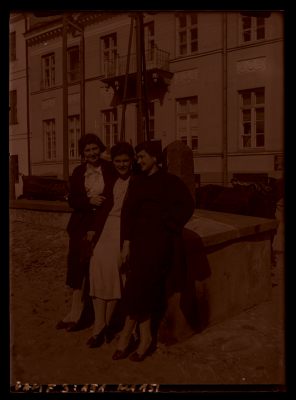 [Grupp tundmatuid naisi Tartu ülikooli peahoone ees]